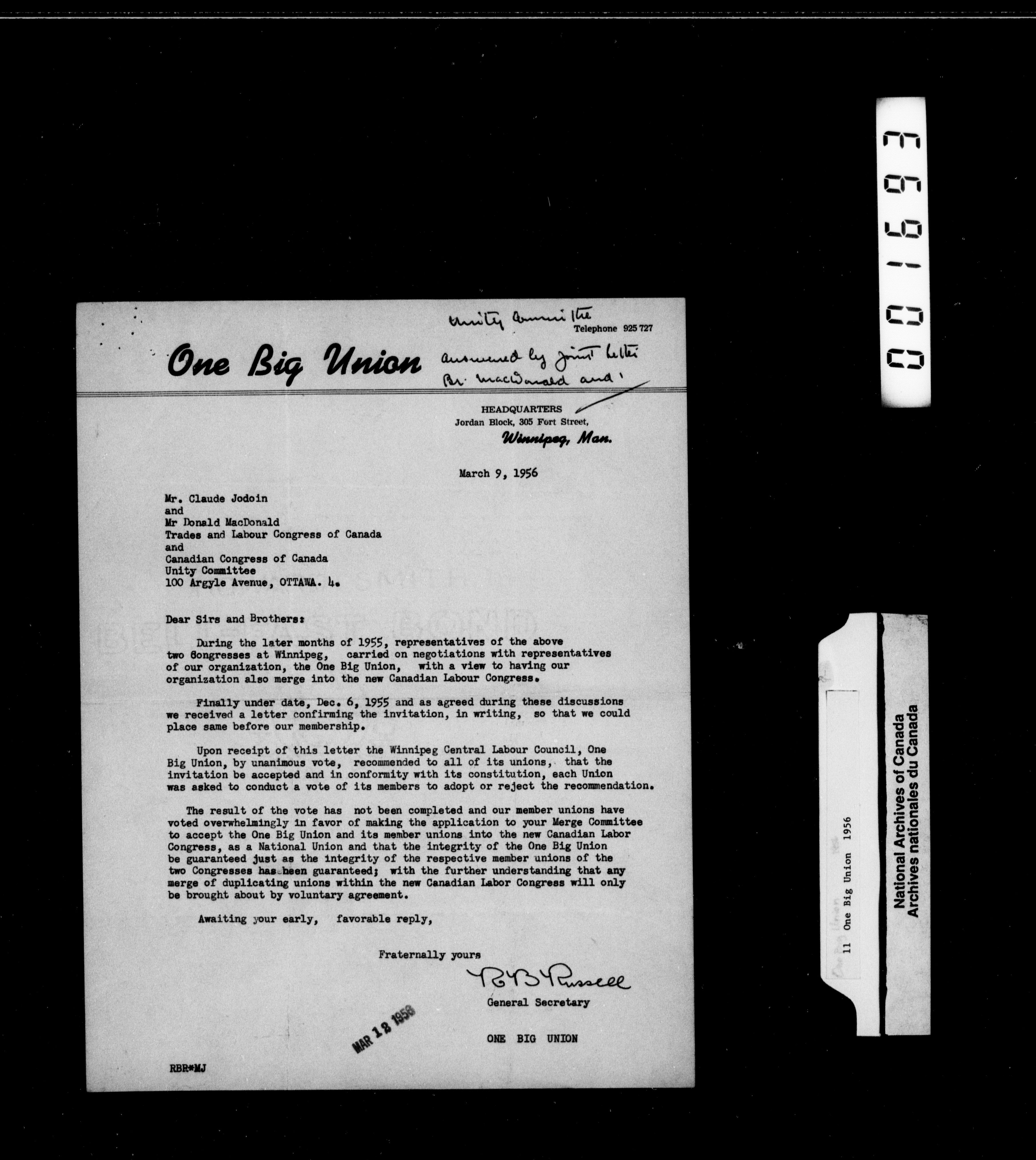 Trades and Labour Congress of Canada : National union correspondence - 2233