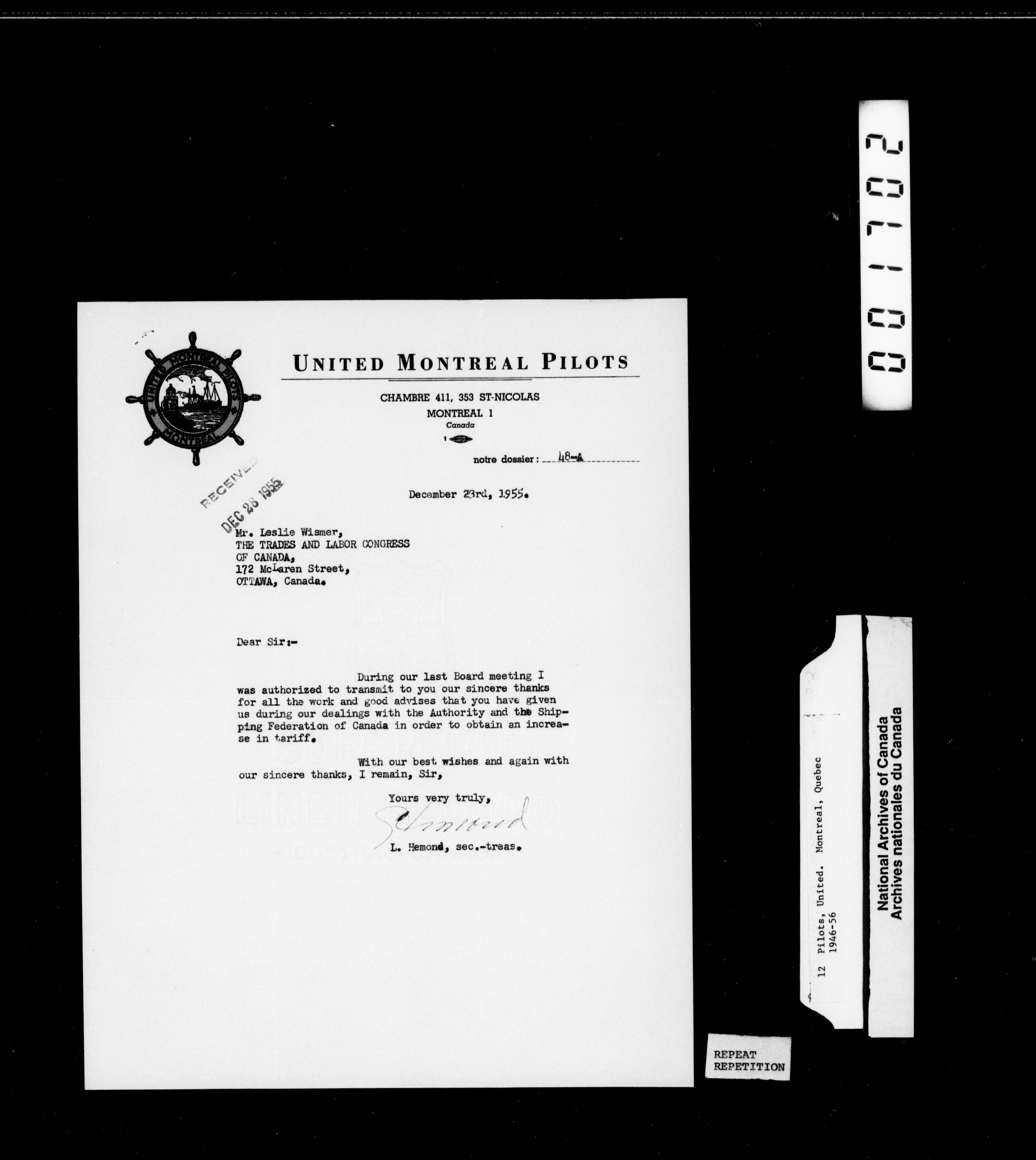 Trades and Labour Congress of Canada : National union correspondence - 2233