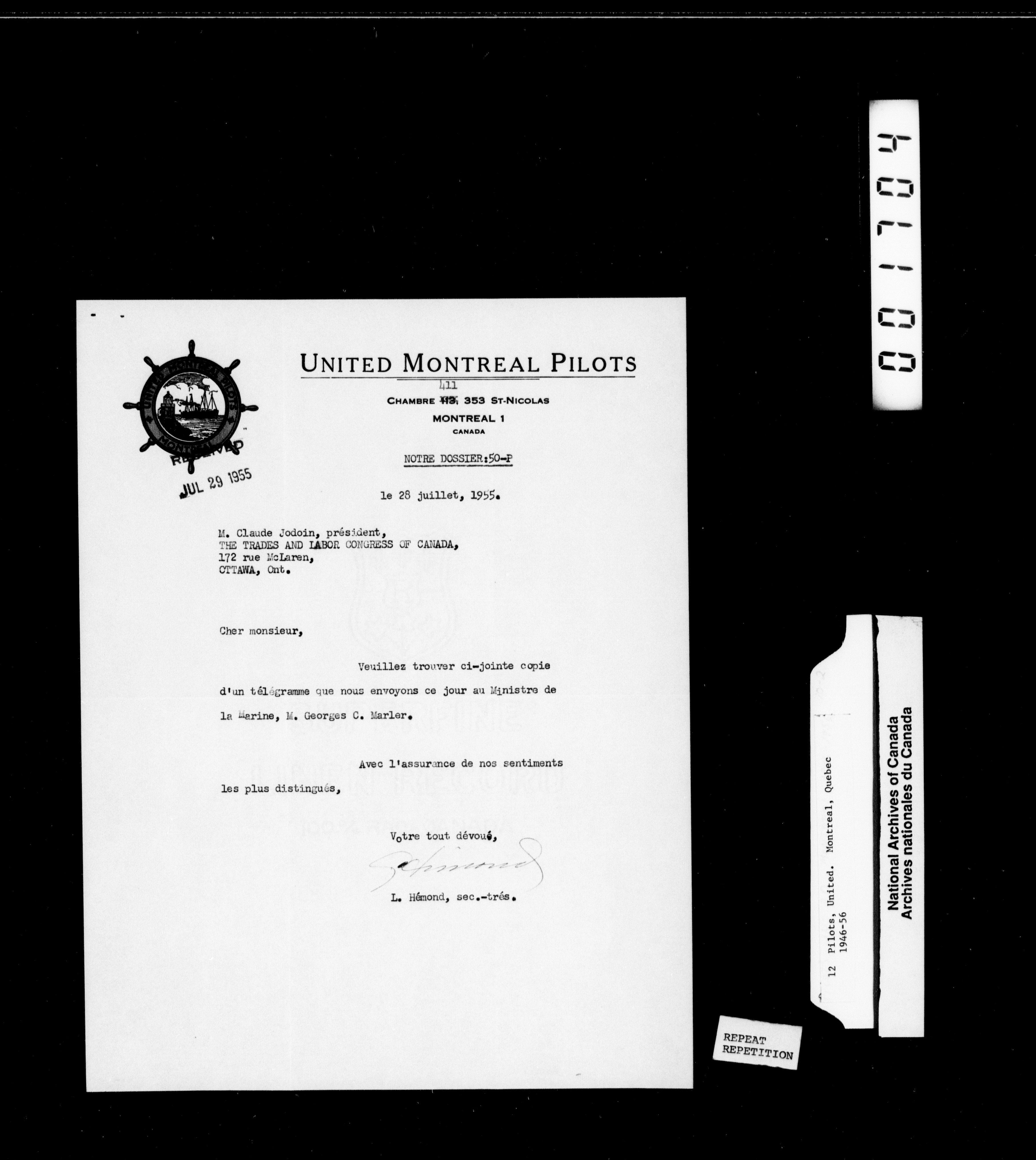Trades and Labour Congress of Canada : National union correspondence - 2233