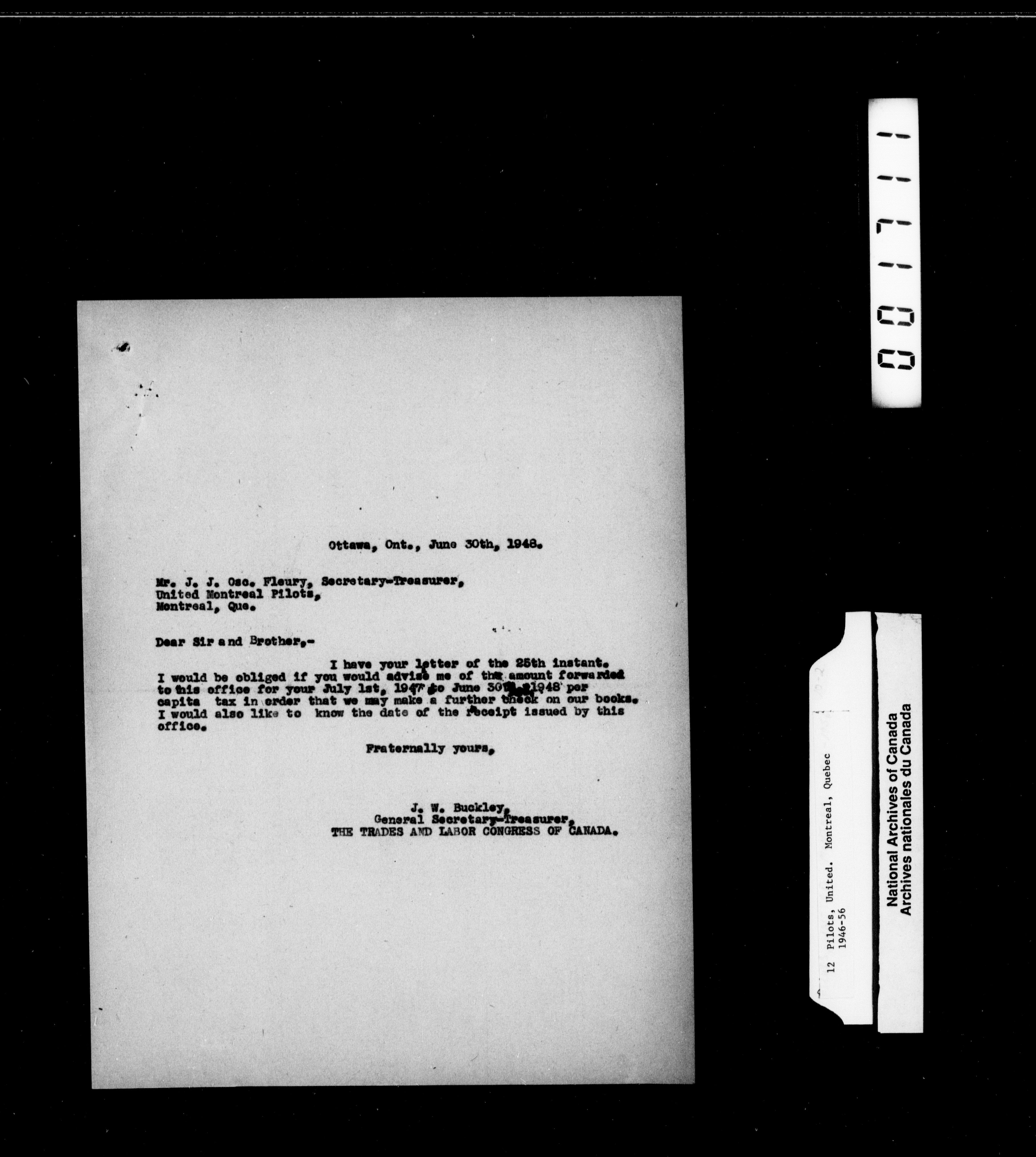 Trades and Labour Congress of Canada : National union correspondence - 2233