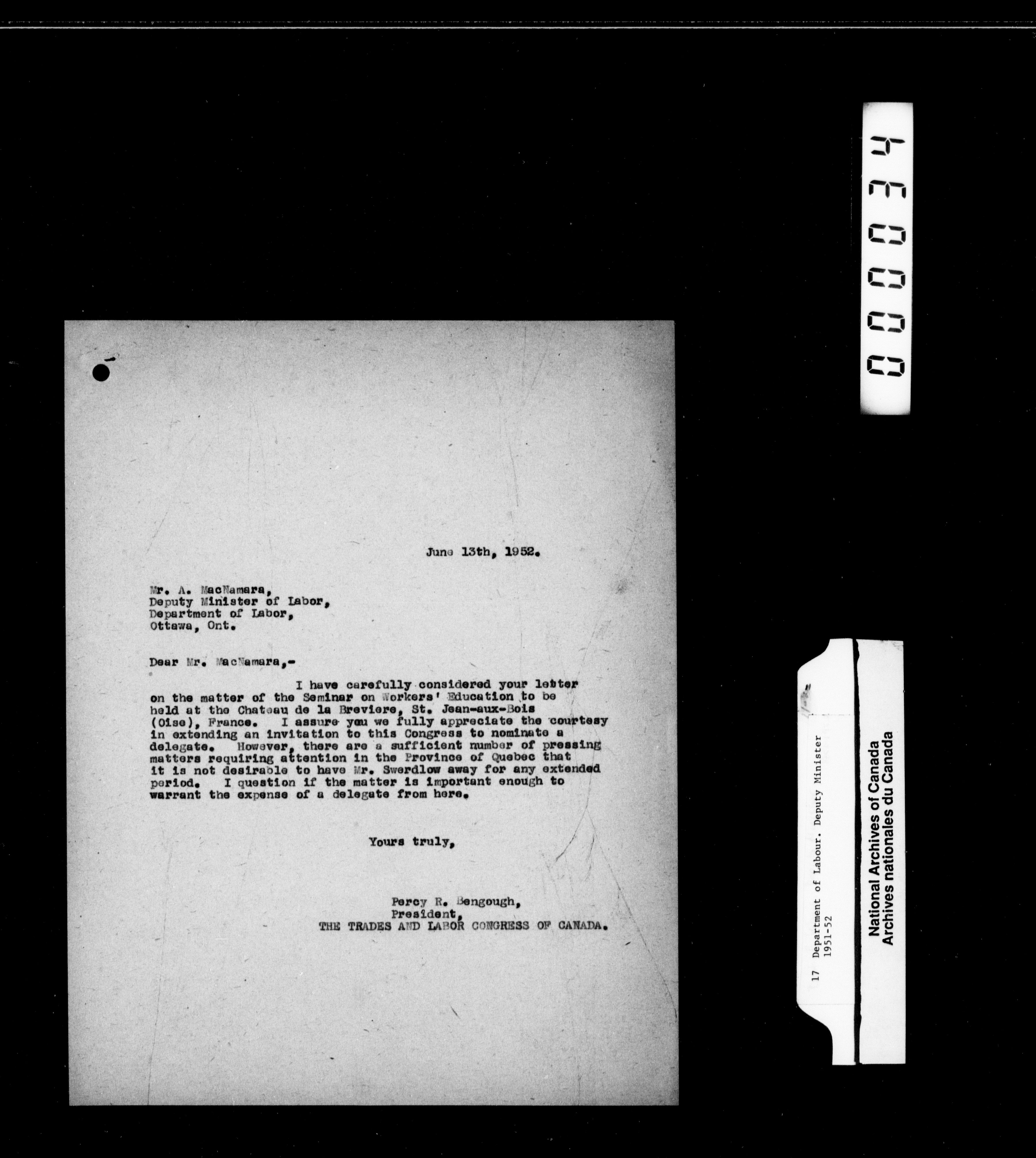 Trades and Labour Congress of Canada : Federal and provincial government correspondence - 2235