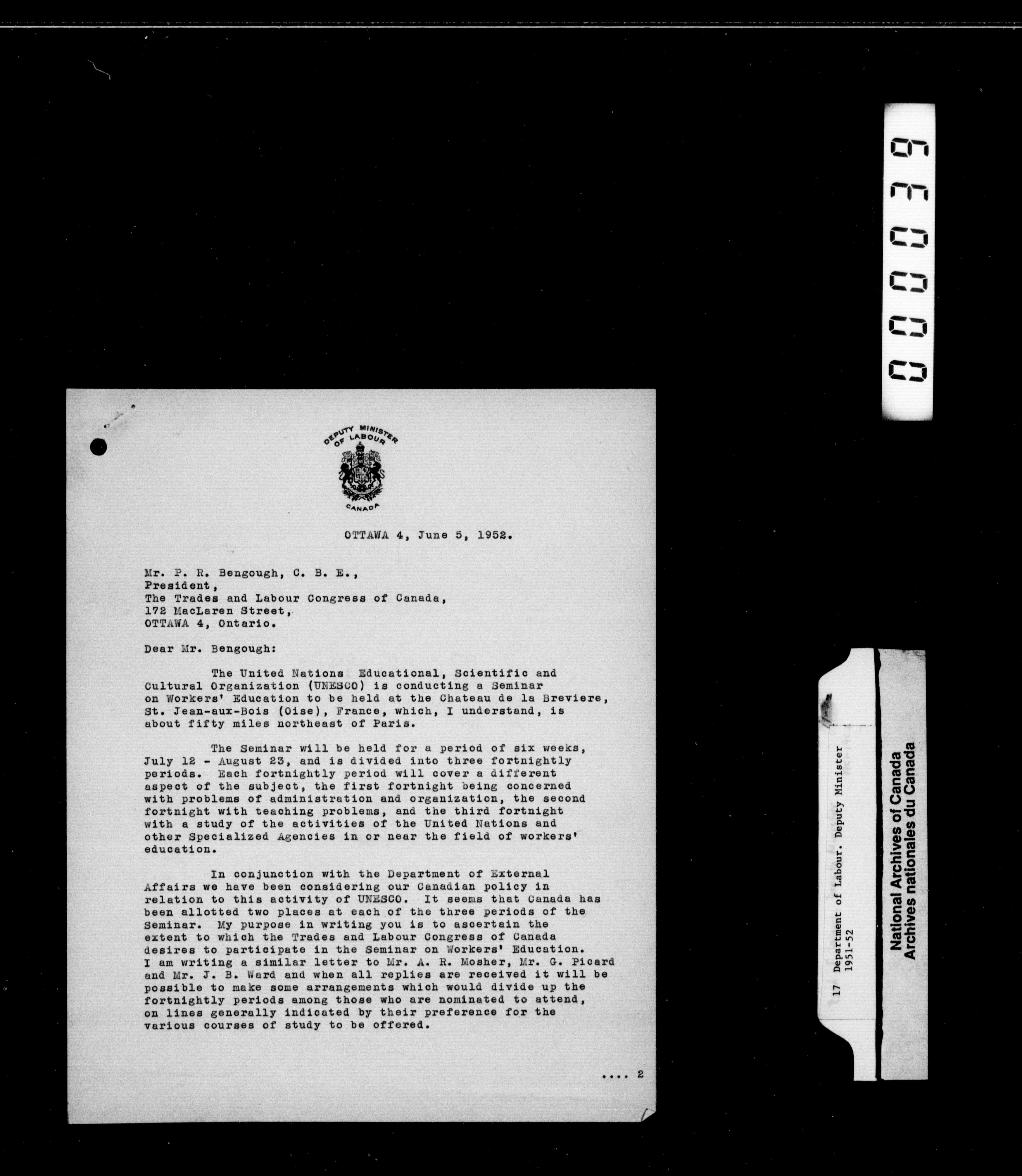 Trades and Labour Congress of Canada : Federal and provincial government correspondence - 2235