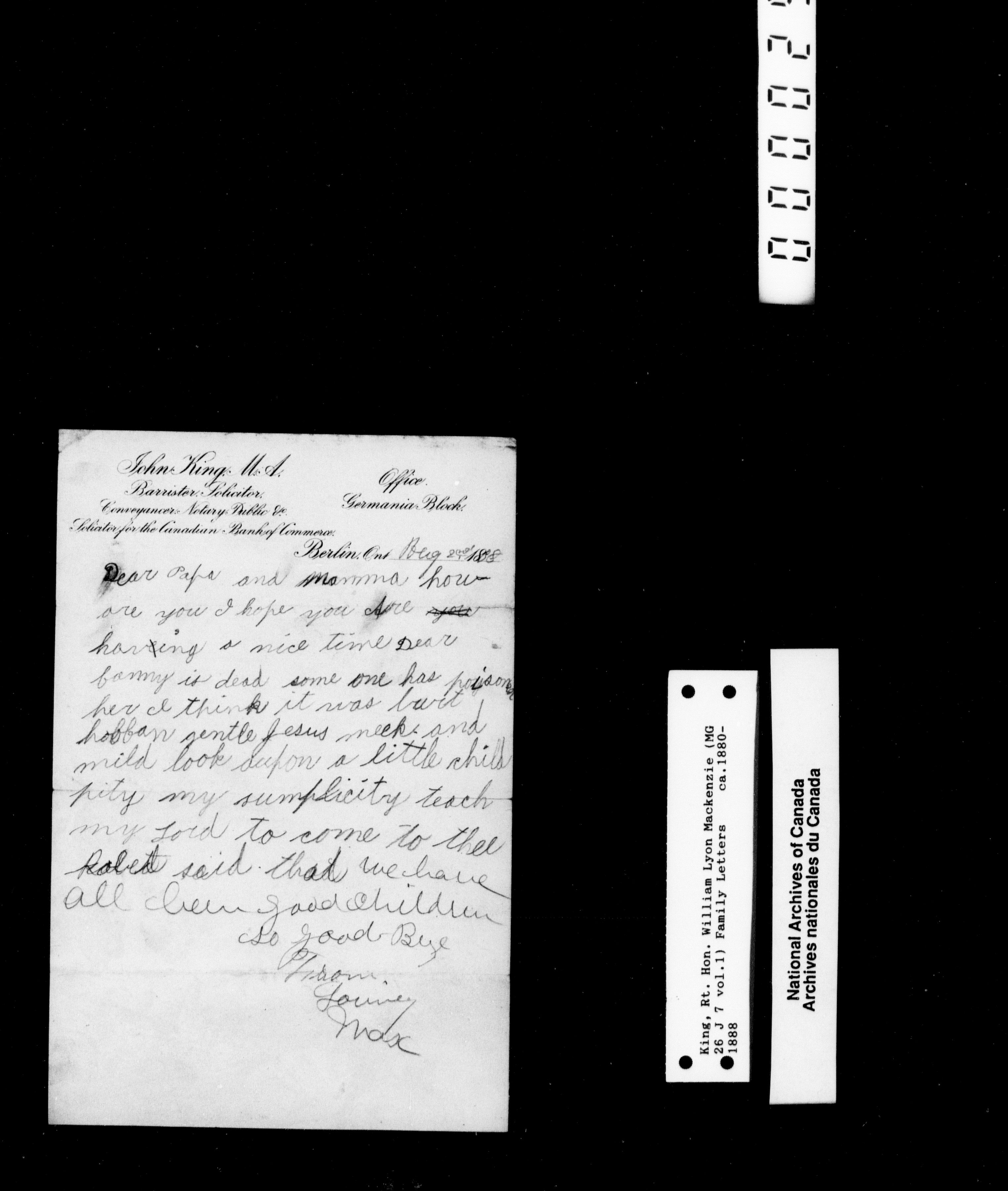 William Lyon Mackenzie King Mg 26 J 7: Family Papers Series 1880-1950 - 2244
