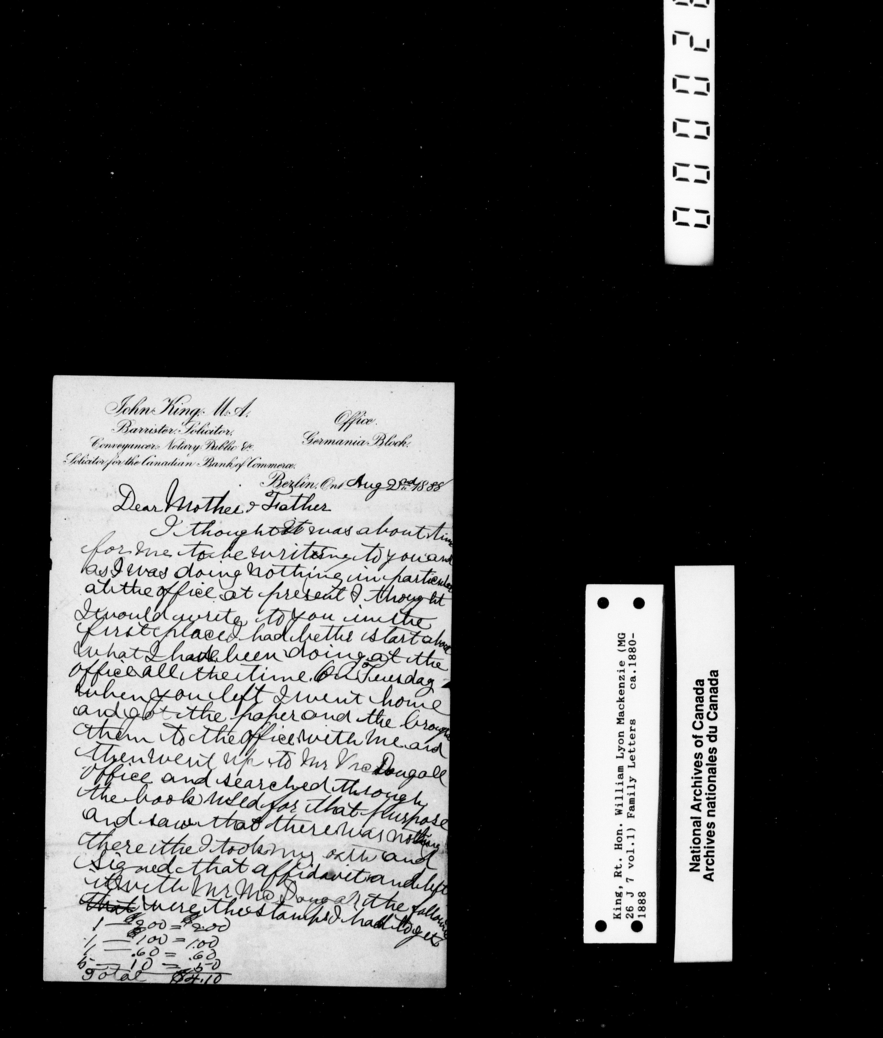 William Lyon Mackenzie King Mg 26 J 7: Family Papers Series 1880-1950 - 2244
