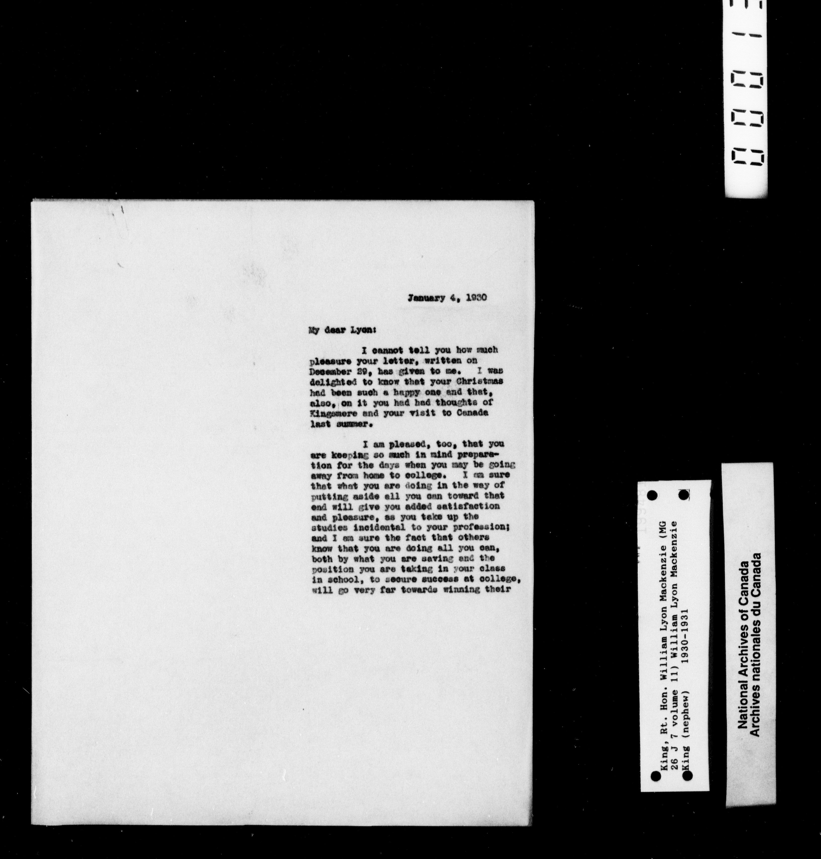 William Lyon Mackenzie King Mg 26 J 7: Family Papers Series 1880-1950 - 2255