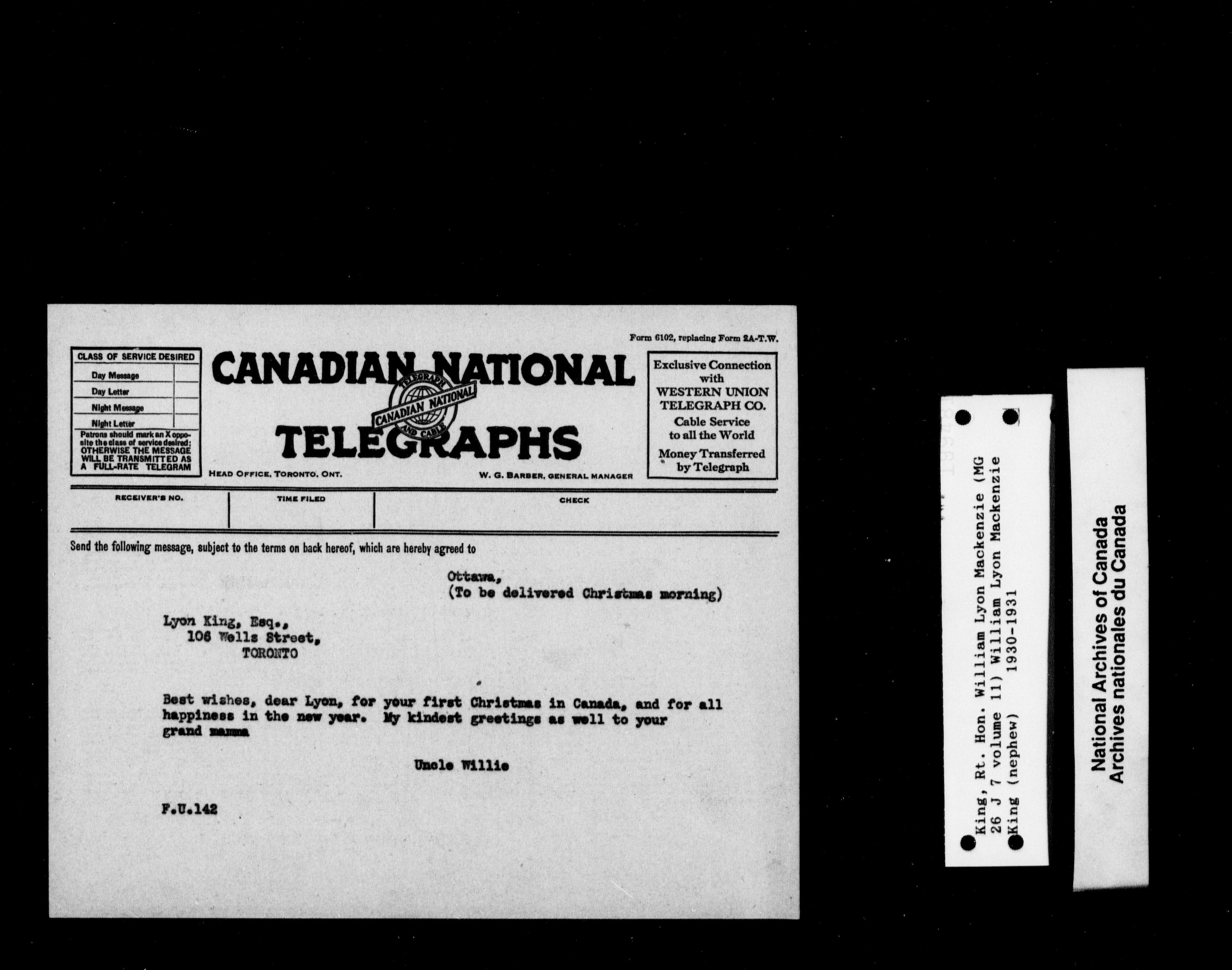 William Lyon Mackenzie King Mg 26 J 7: Family Papers Series 1880-1950 - 2255