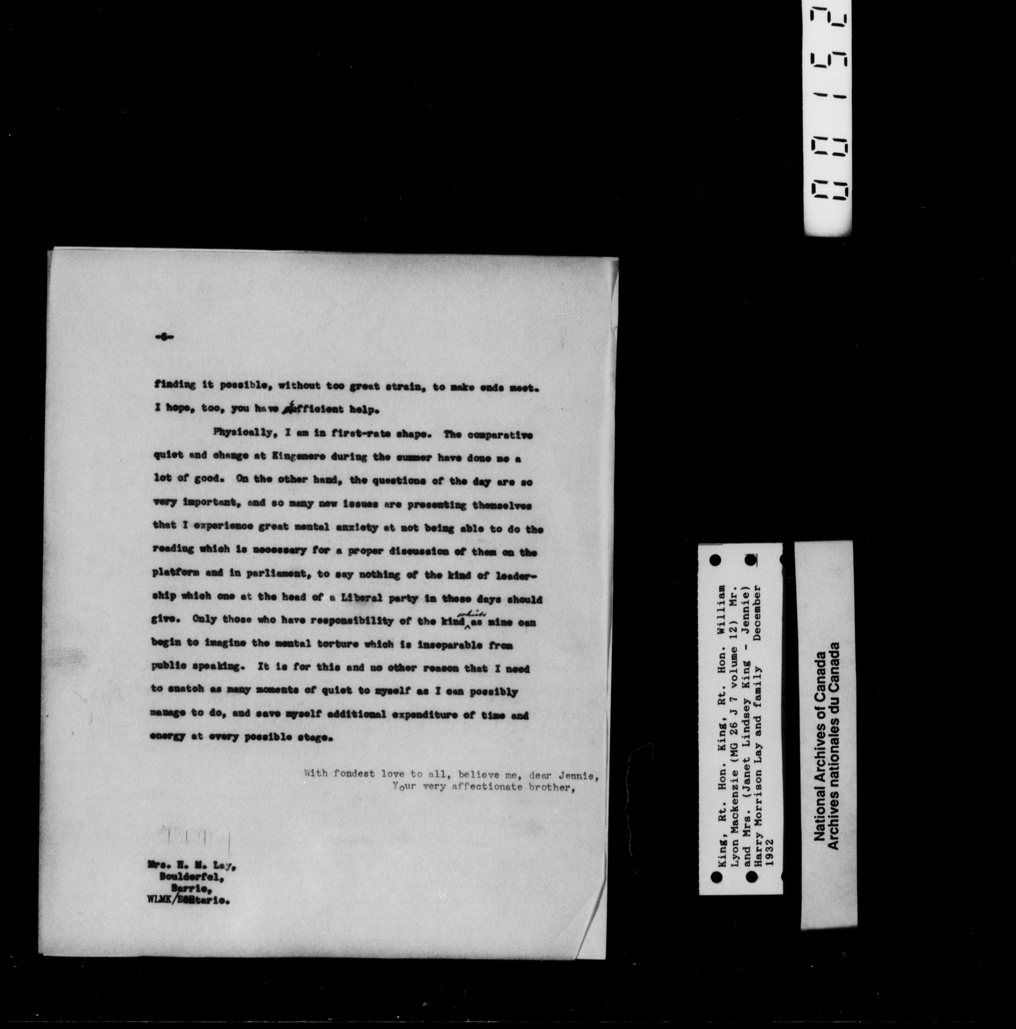 William Lyon Mackenzie King Mg 26 J 7: Family Papers Series 1880-1950 - 2256