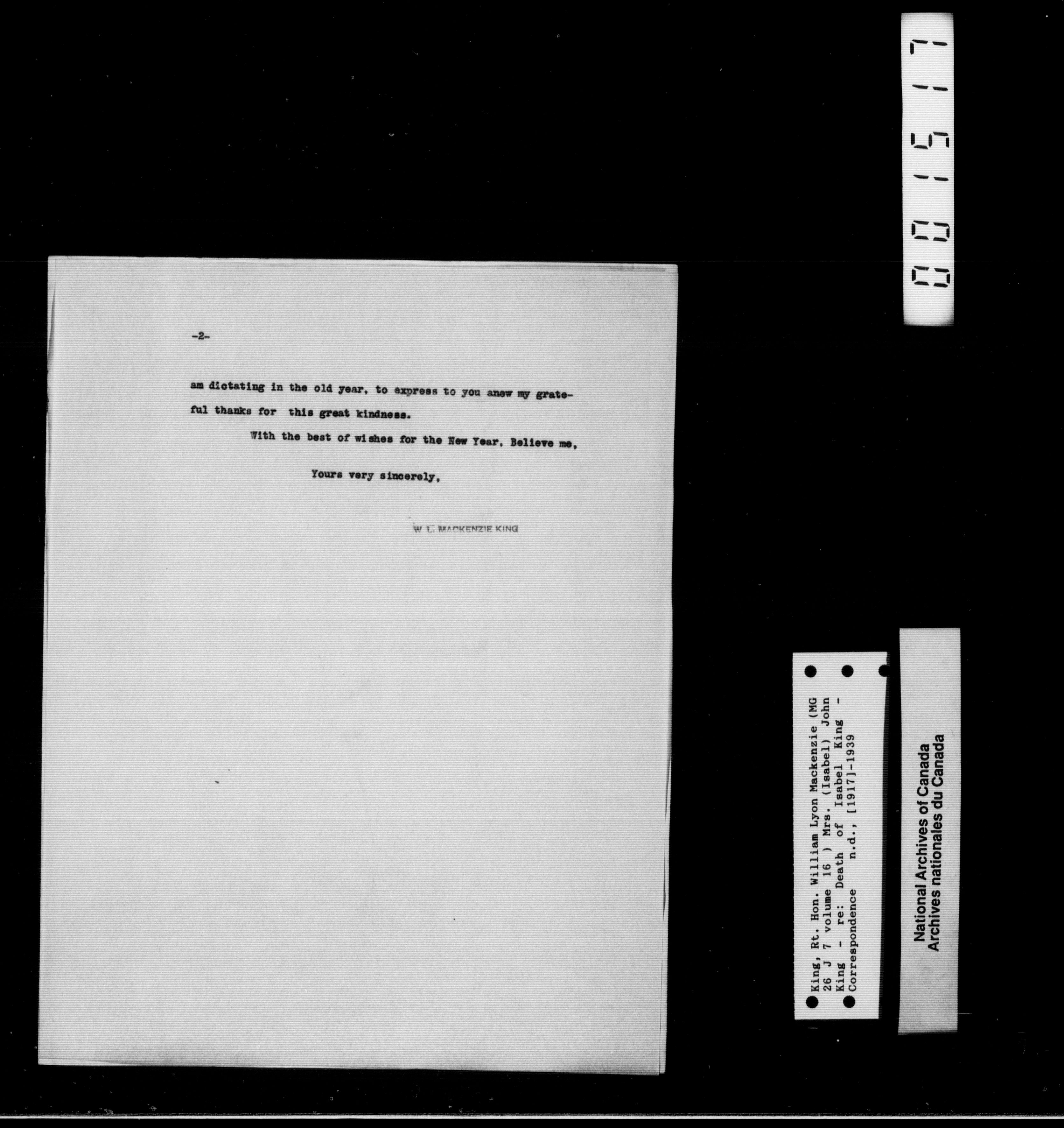 William Lyon Mackenzie King Mg 26 J 7: Family Papers Series 1880-1950 - 2260