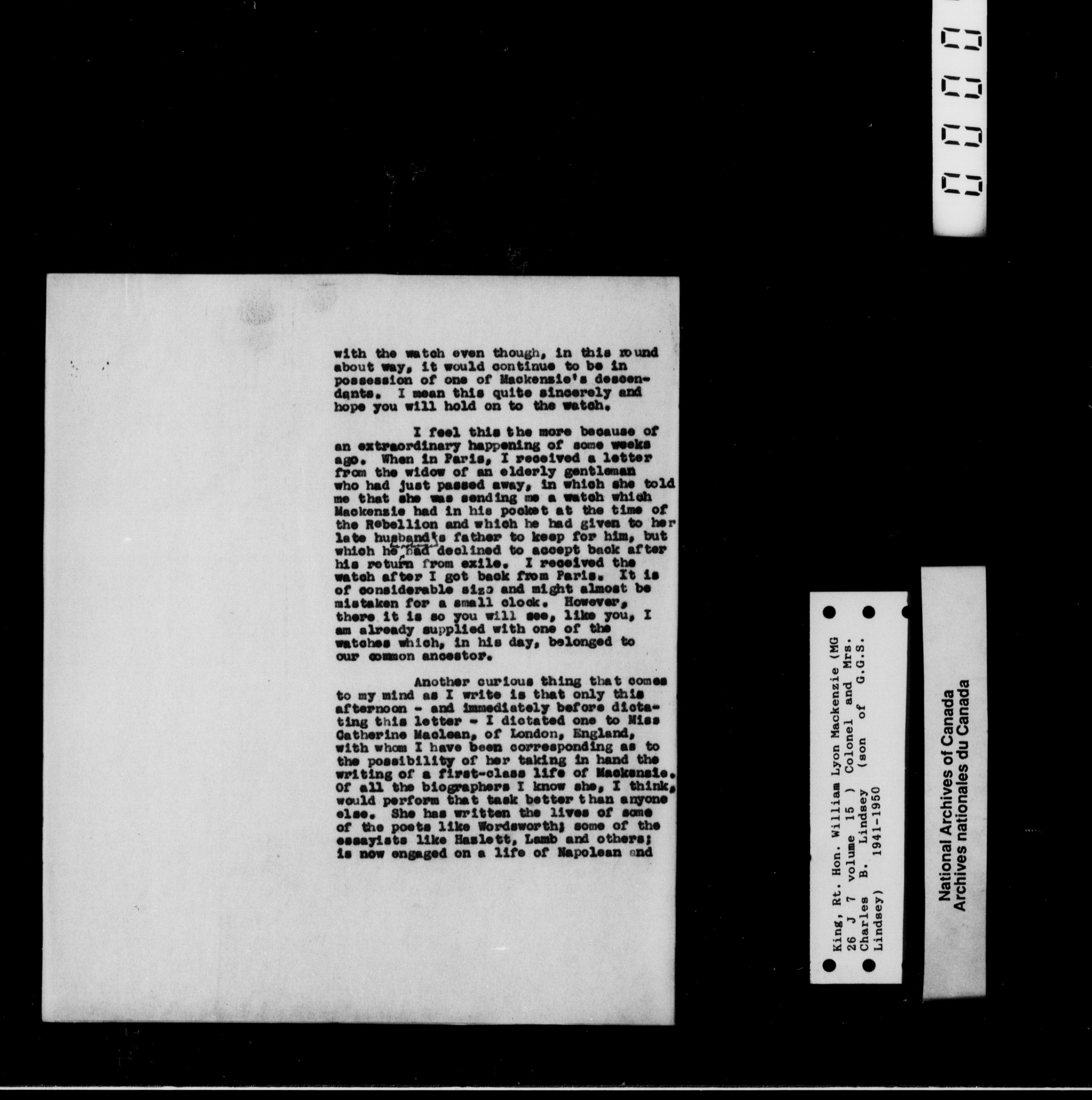 William Lyon Mackenzie King : Family papers : H-2260