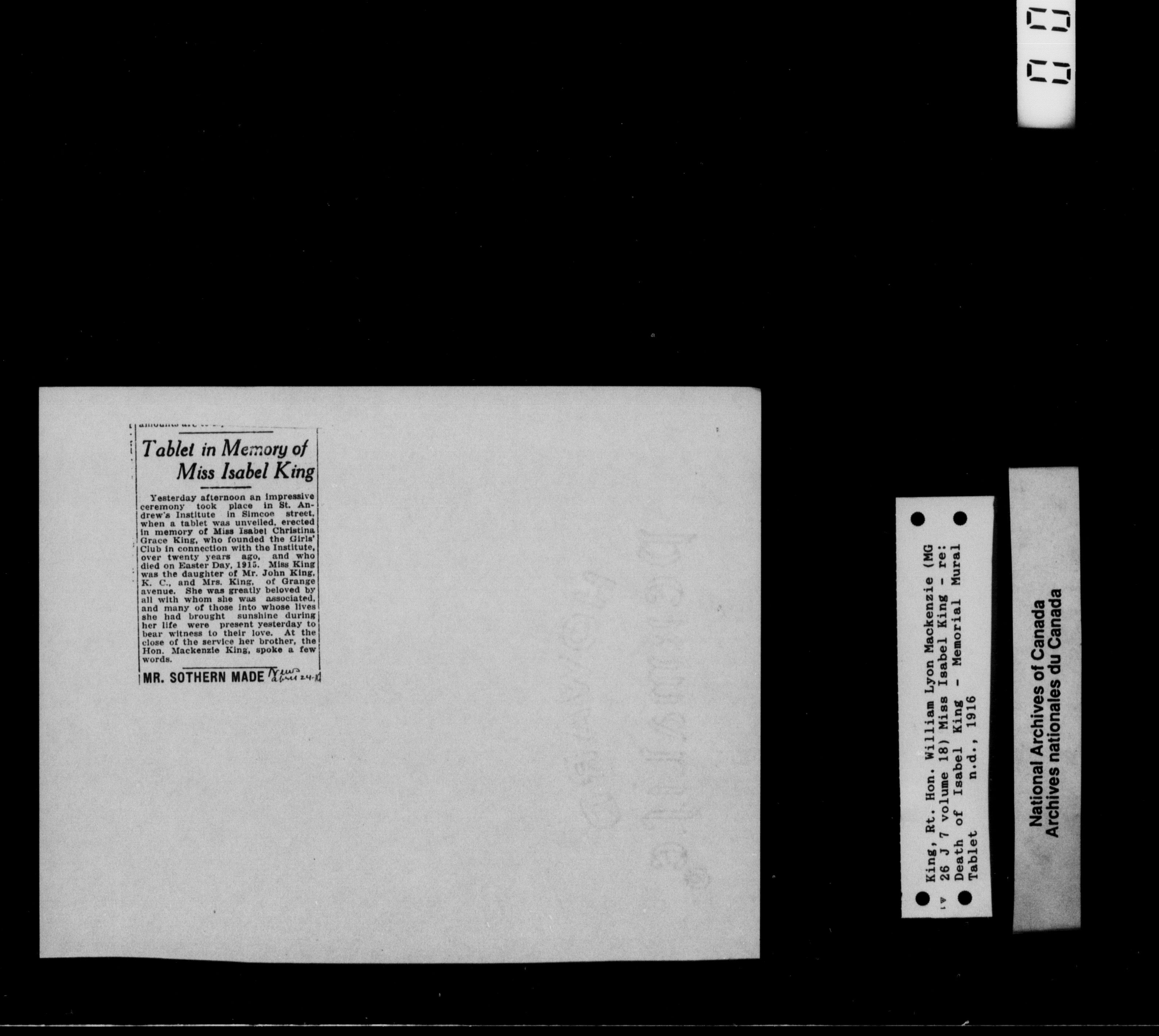William Lyon Mackenzie King Mg 26 J 7: Family Papers Series 1880-1950 - 2262