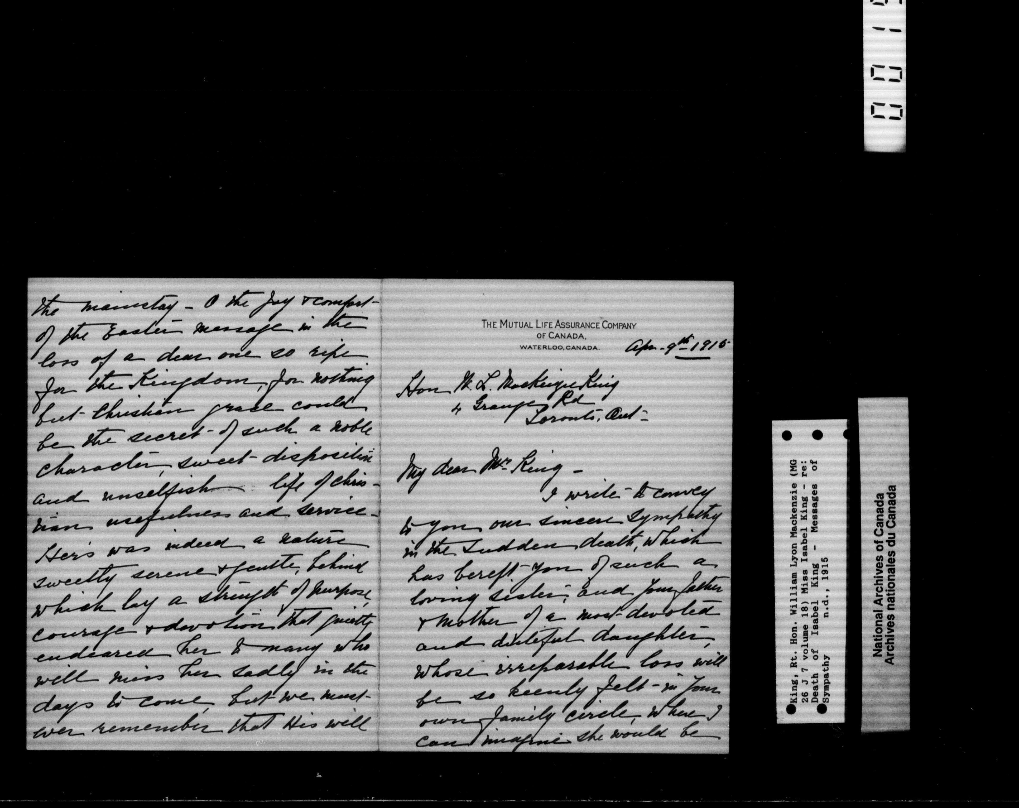 William Lyon Mackenzie King Mg 26 J 7: Family Papers Series 1880-1950 - 2262