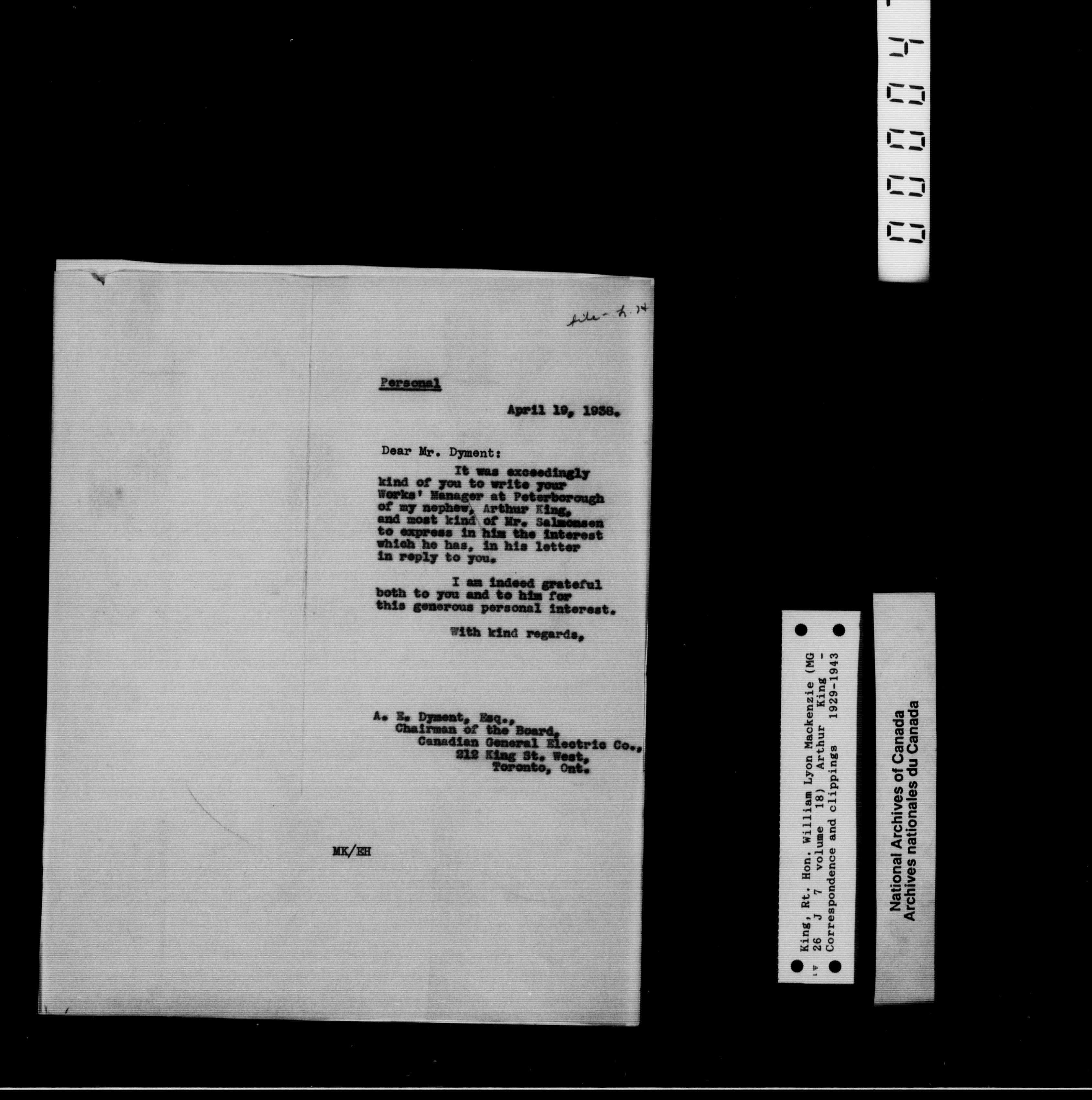William Lyon Mackenzie King : Family papers : H-2263