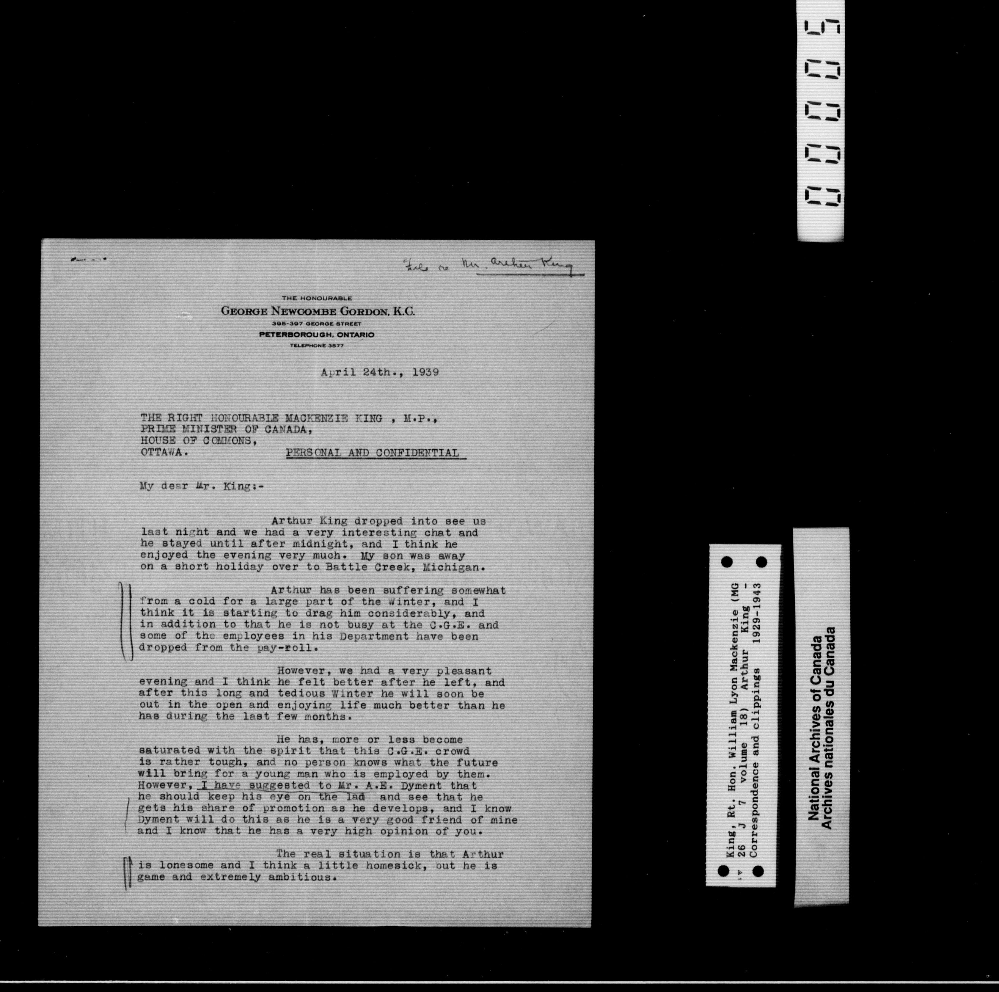 William Lyon Mackenzie King Mg 26 J 7: Family Papers Series 1880-1950 - 2263