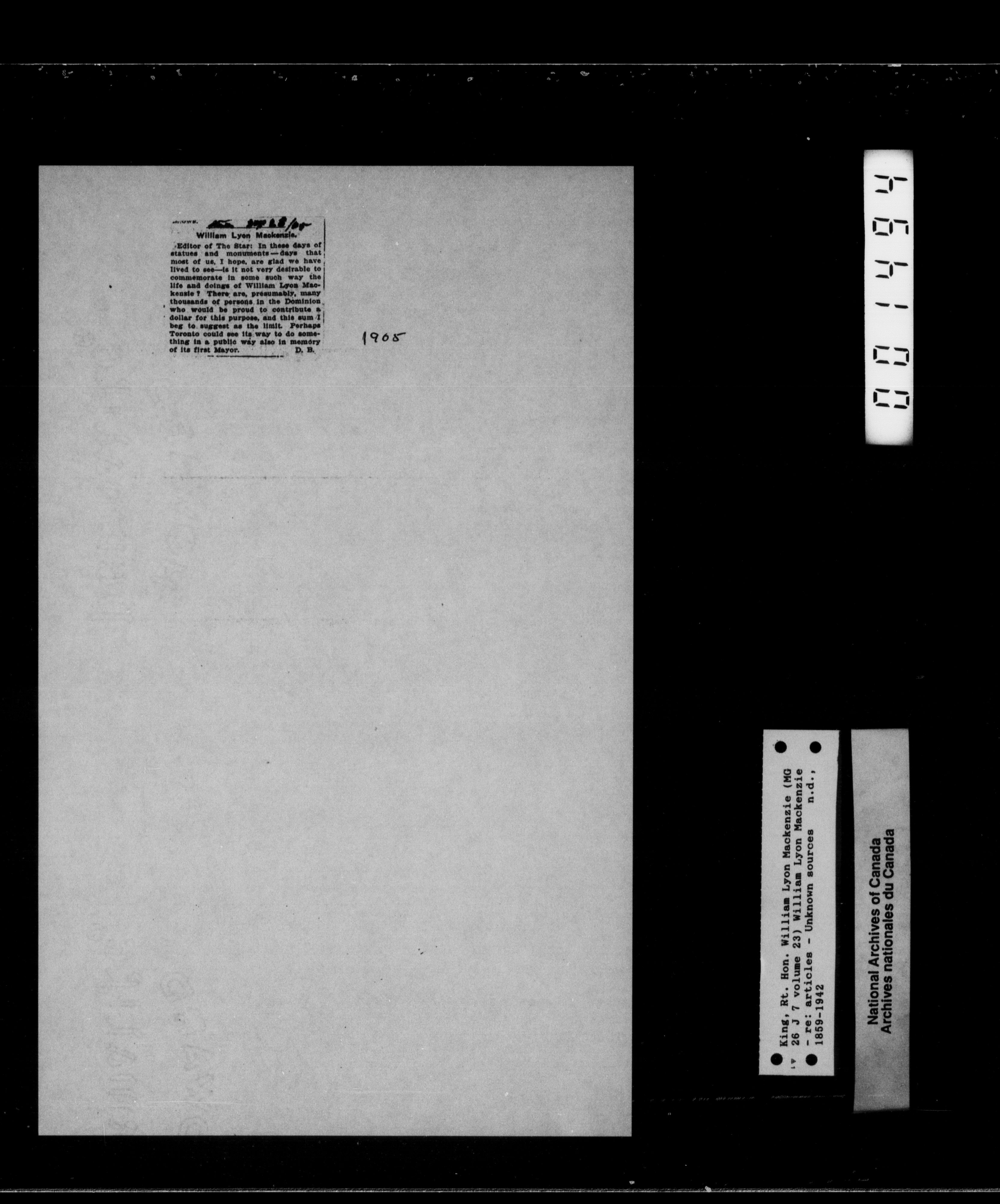 William Lyon Mackenzie King Mg 26 J 7: Family Papers Series 1880-1950 - 2267