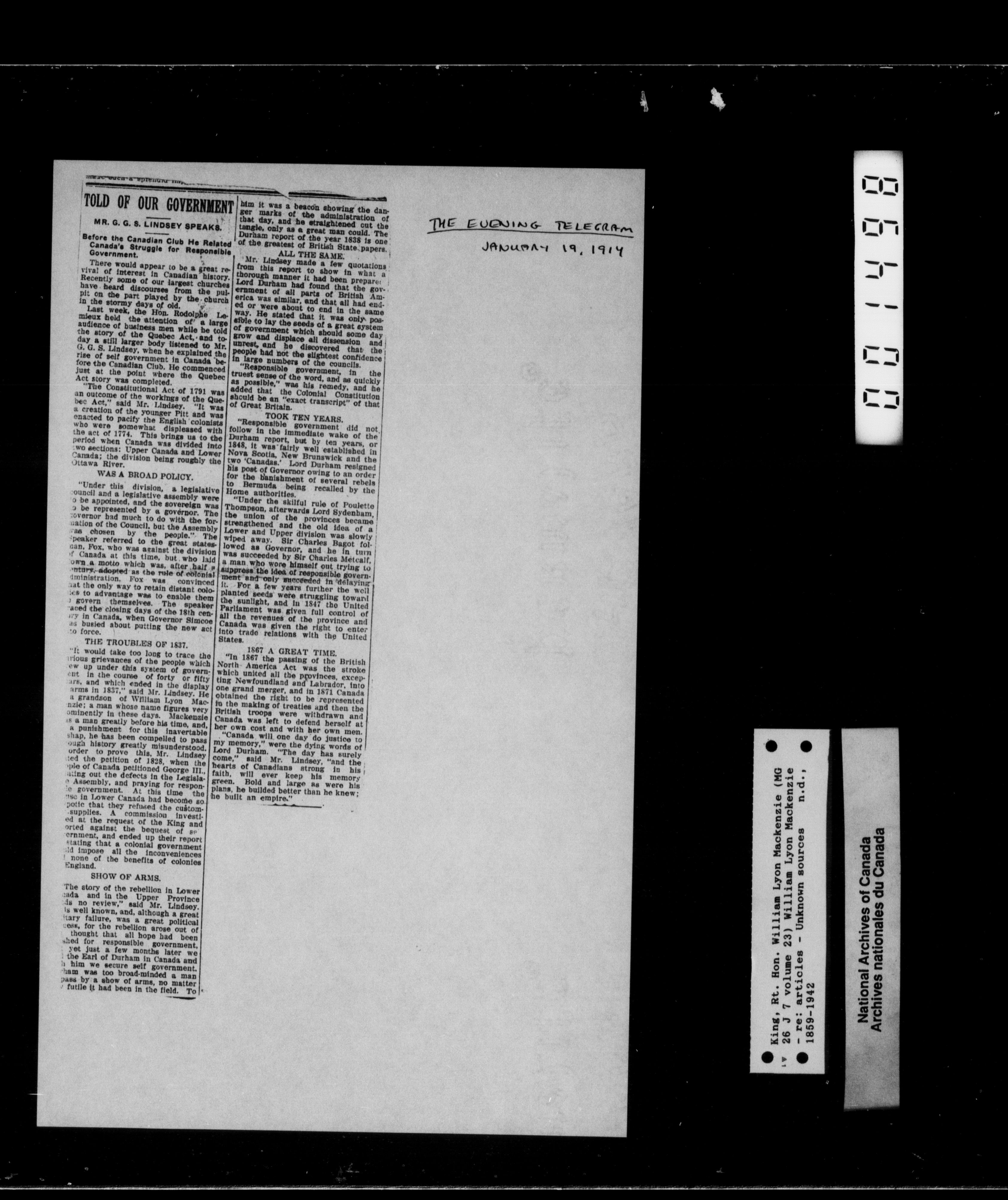 William Lyon Mackenzie King Mg 26 J 7: Family Papers Series 1880-1950 - 2267