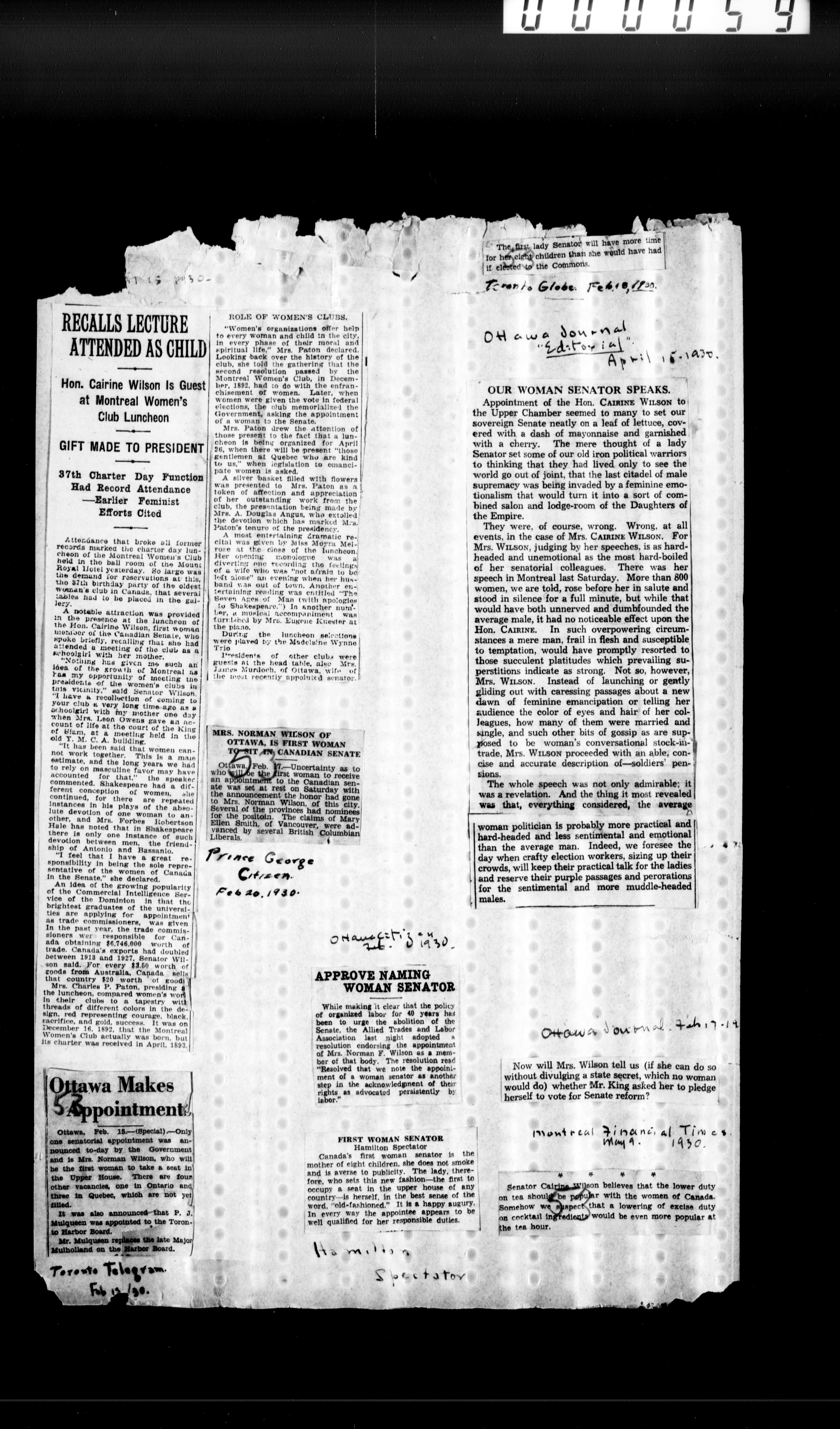 Cairine Reay Wilson : Pamphlets, clippings and scrapbooks - 2303