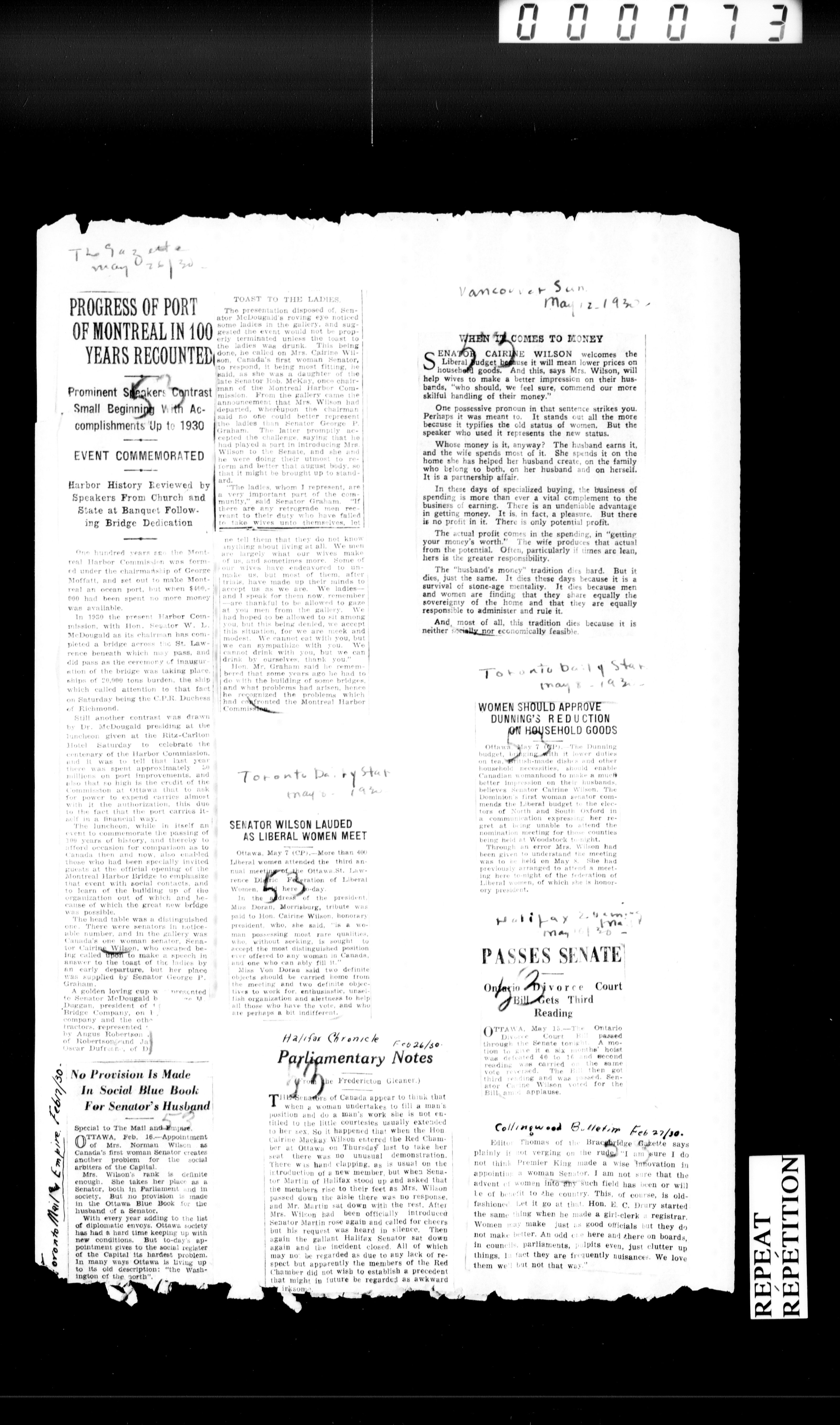 Cairine Reay Wilson : Pamphlets, clippings and scrapbooks - 2303