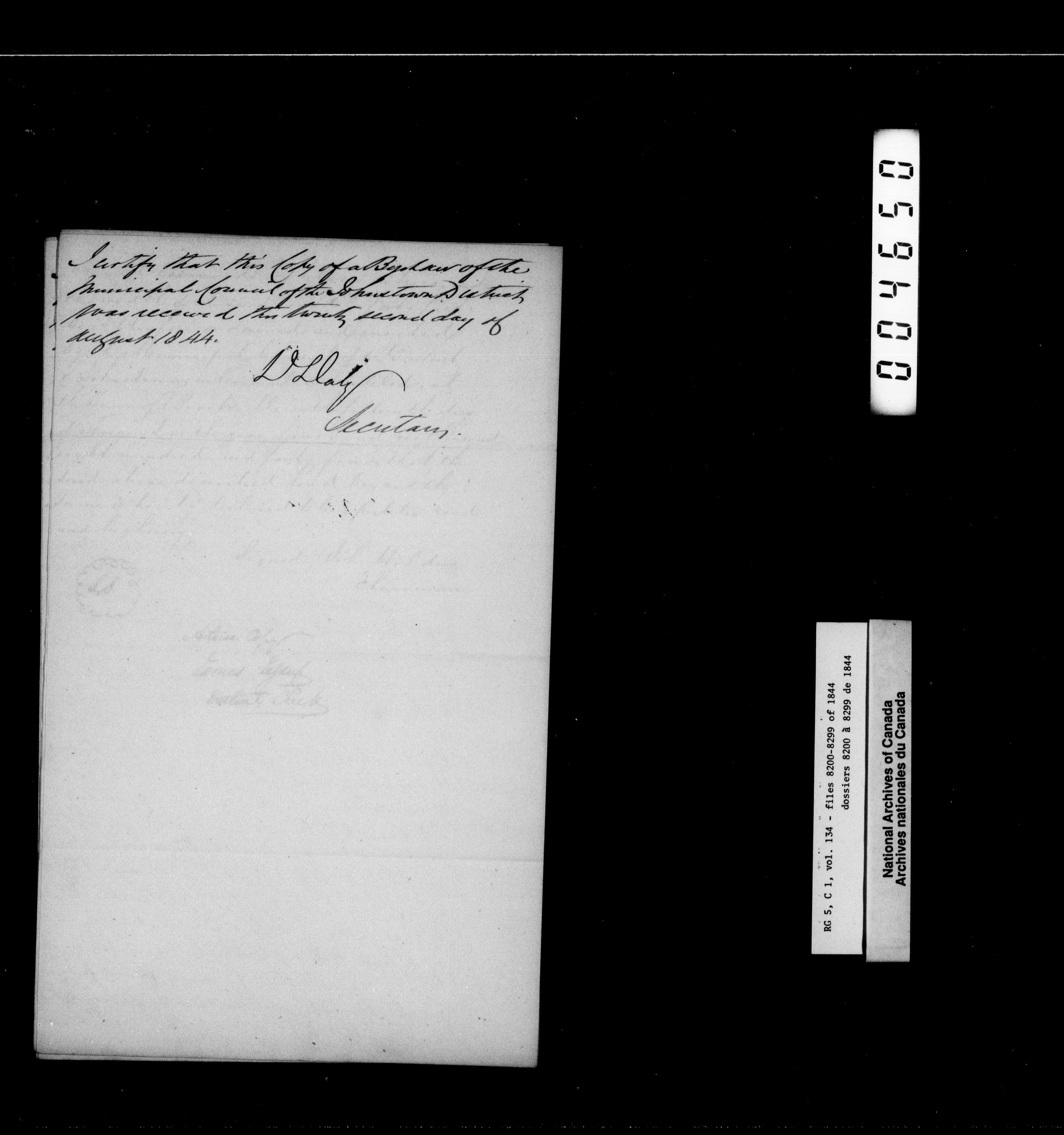Canada West : Provincial Secretary, numbered correspondence files, 1844 to 1867 - 2352