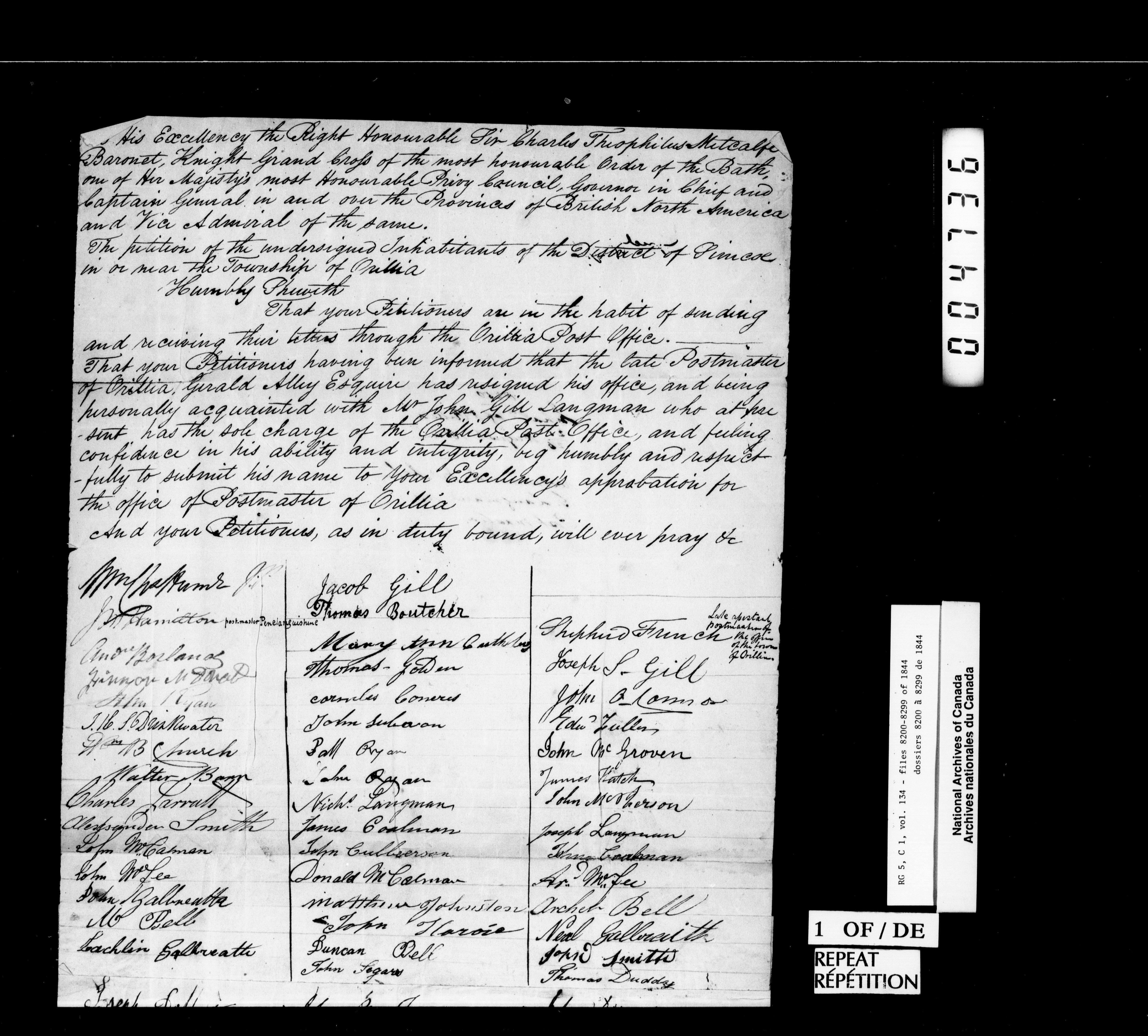Canada West : Provincial Secretary, numbered correspondence files, 1844 to 1867 - 2353