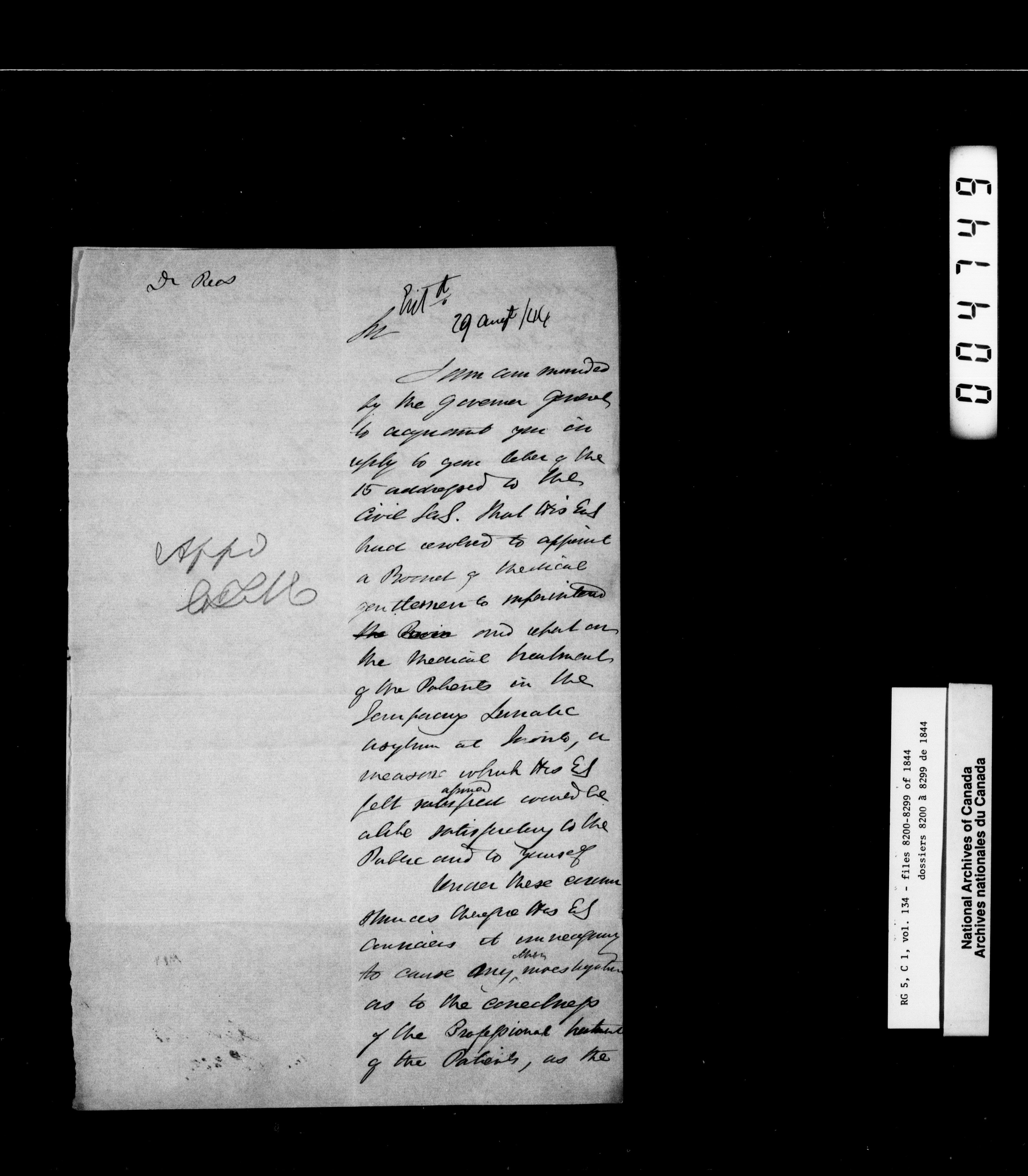 Canada West : Provincial Secretary, numbered correspondence files, 1844 to 1867 - 2353