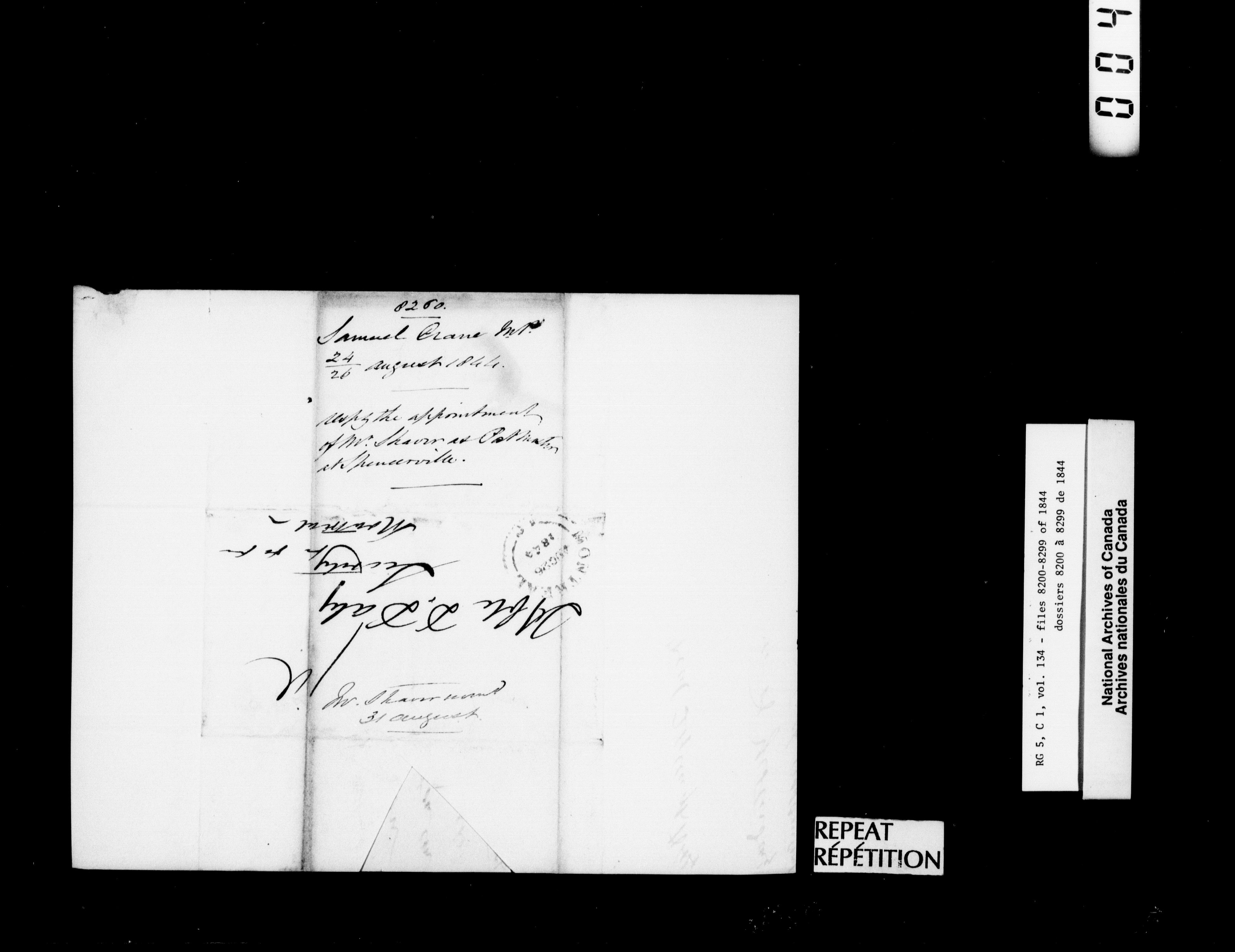 Canada West : Provincial Secretary, numbered correspondence files, 1844 to 1867 - 2353
