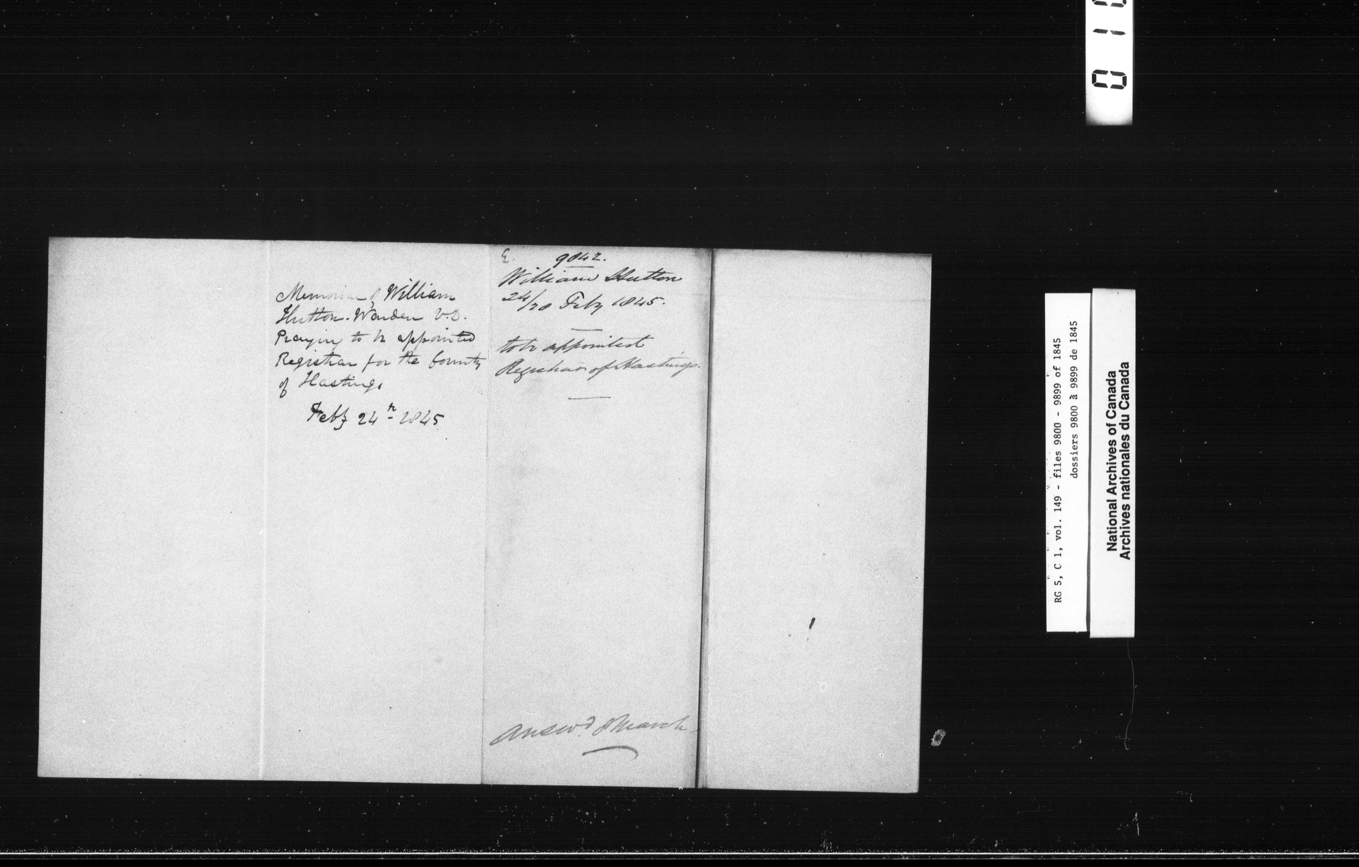 Canada West : Provincial Secretary, numbered correspondence files, 1844 to 1867 - 2356