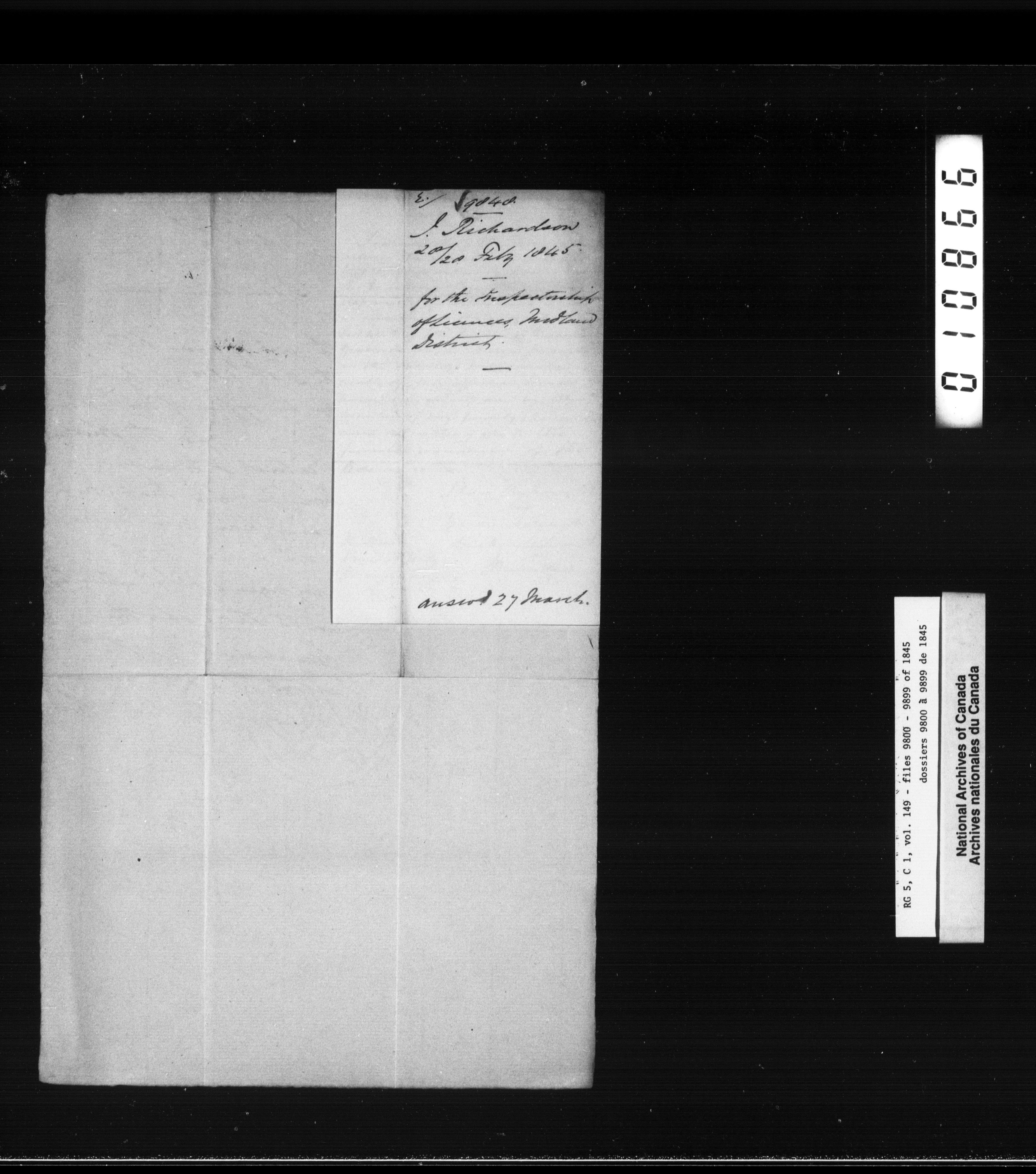 Canada West : Provincial Secretary, numbered correspondence files, 1844 to 1867 - 2356