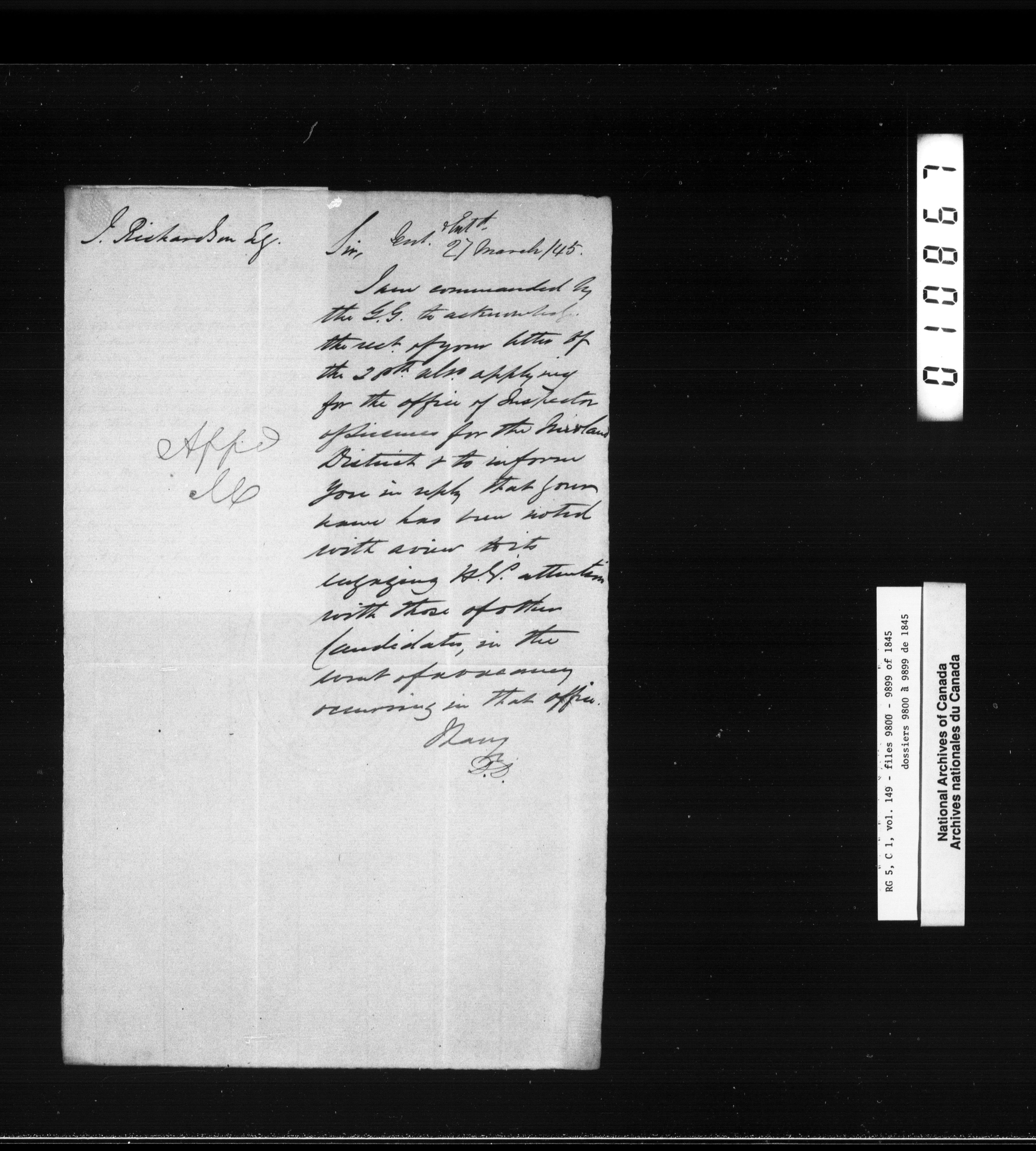 Canada West : Provincial Secretary, numbered correspondence files, 1844 to 1867 - 2356