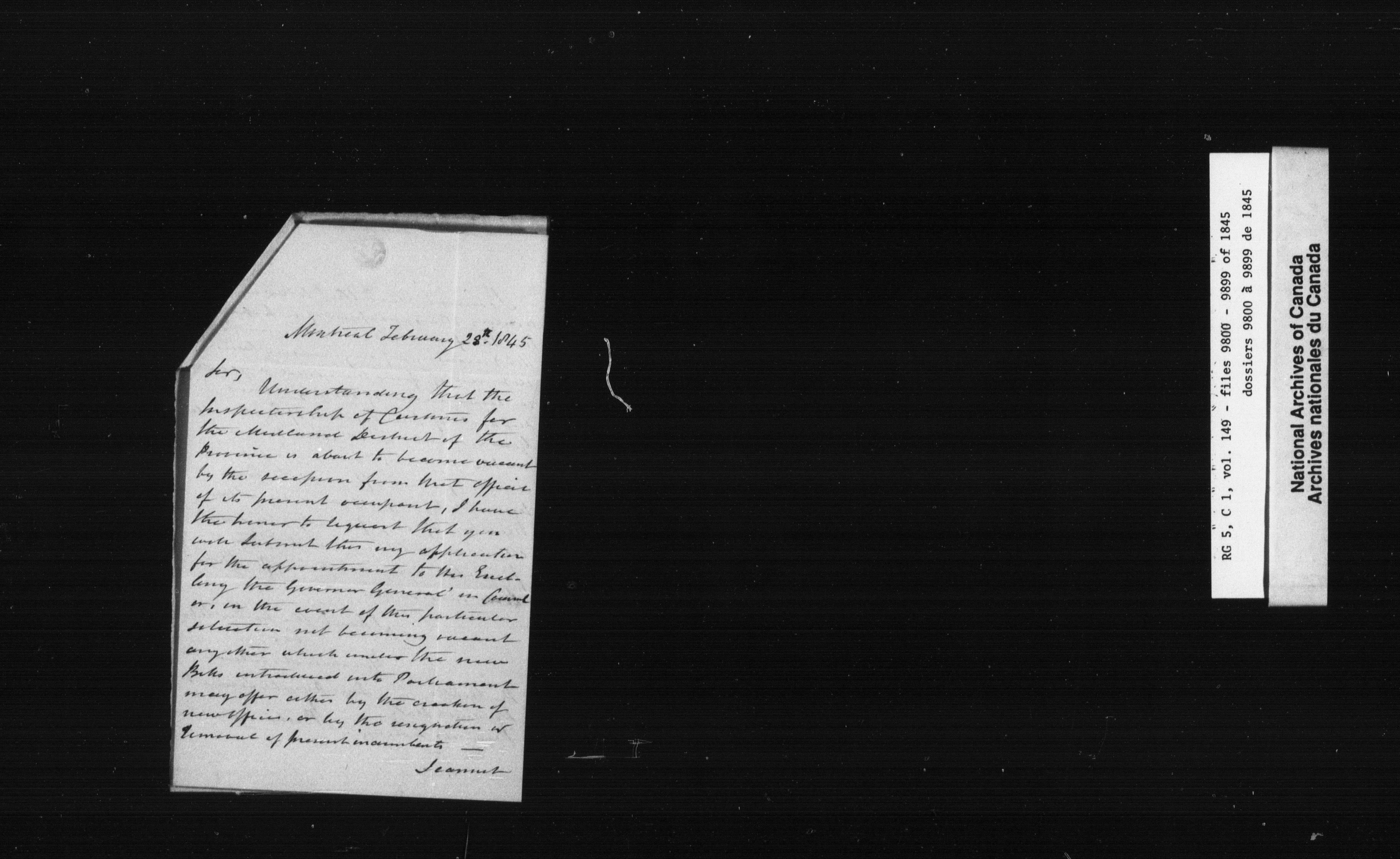 Canada West : Provincial Secretary, numbered correspondence files, 1844 to 1867 - 2356