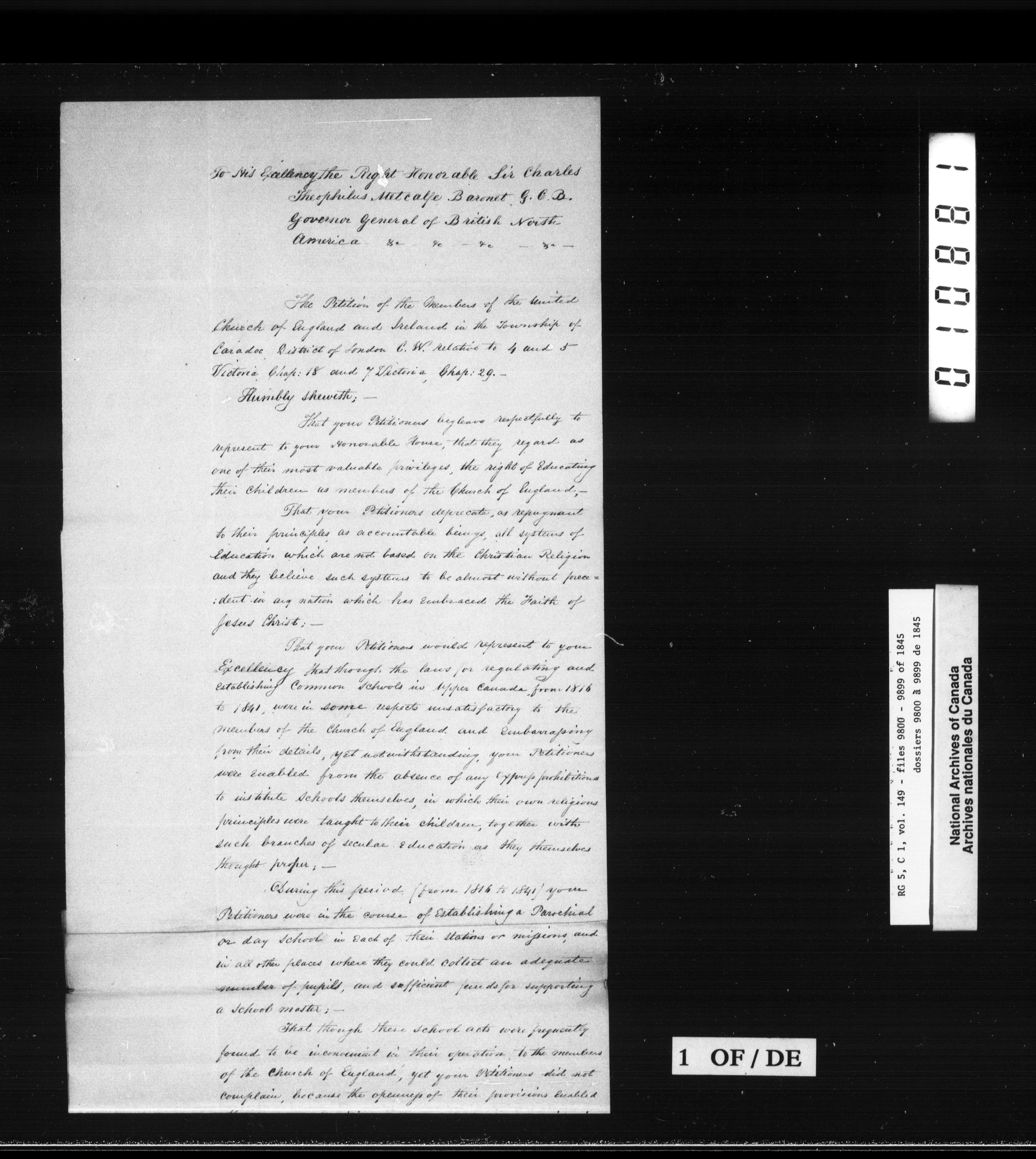 Canada West : Provincial Secretary, numbered correspondence files, 1844 to 1867 - 2356