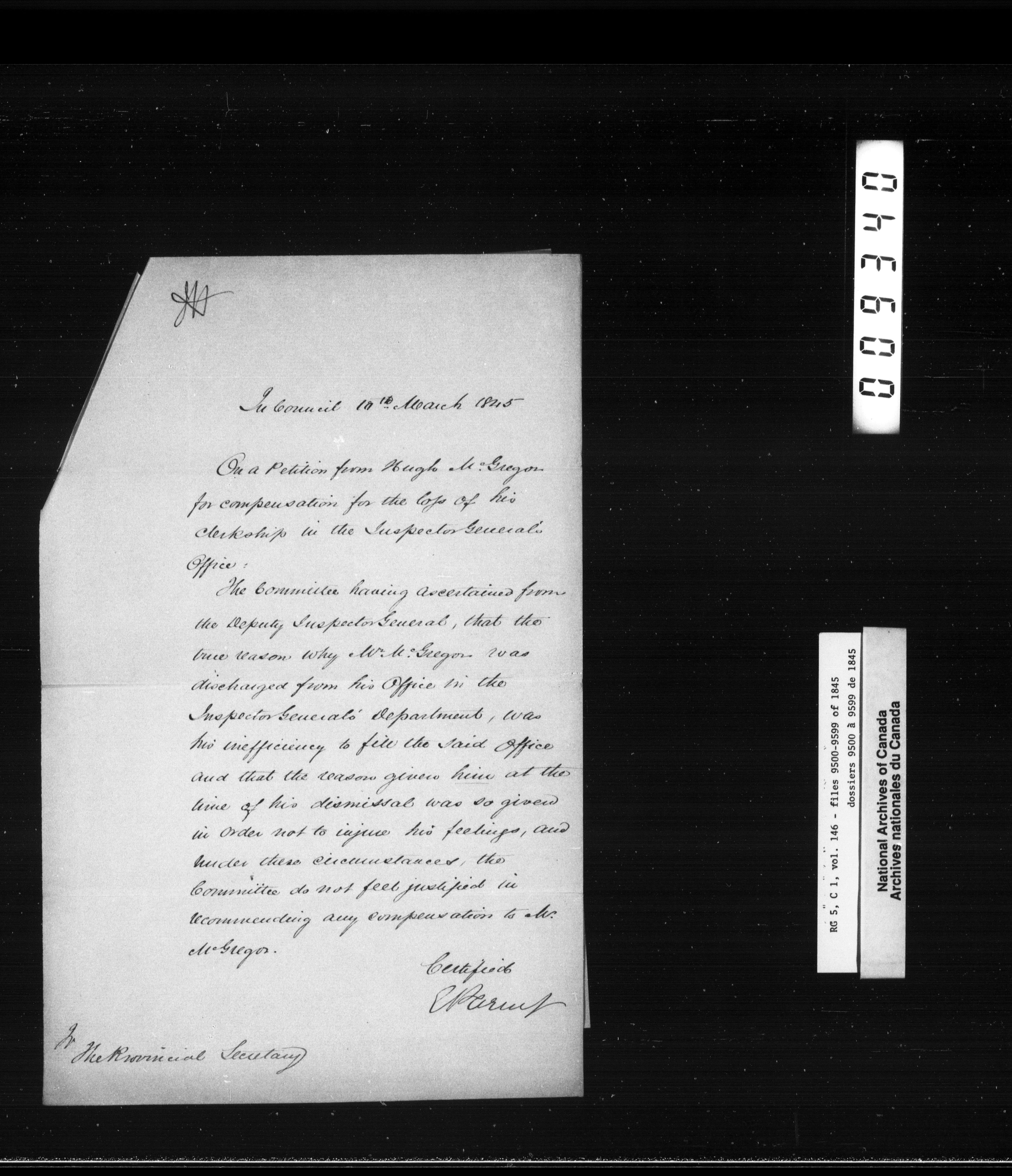 Canada West : Provincial Secretary, numbered correspondence files, 1844 to 1867 - 2356