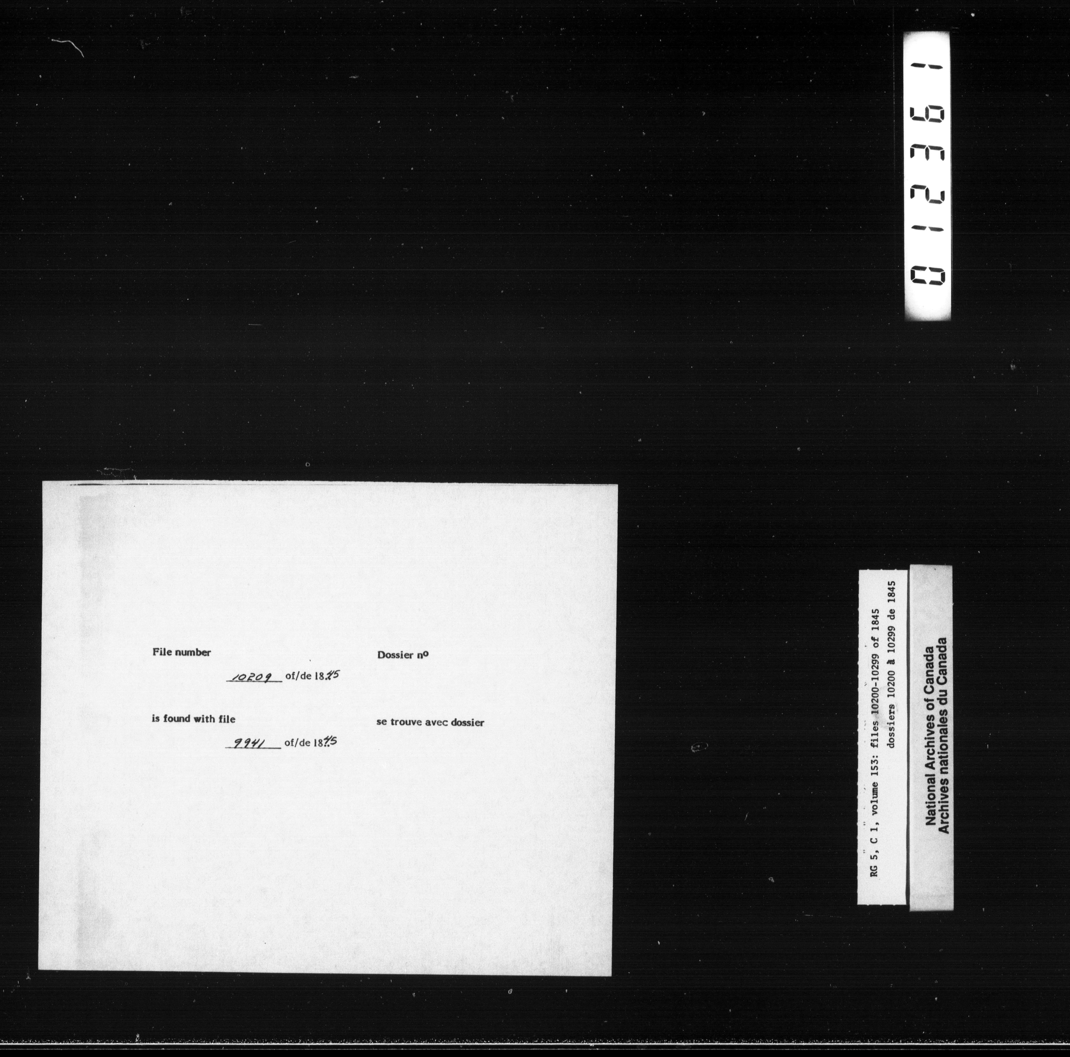 Canada West : Provincial Secretary, numbered correspondence files, 1844 to 1867 - 2357