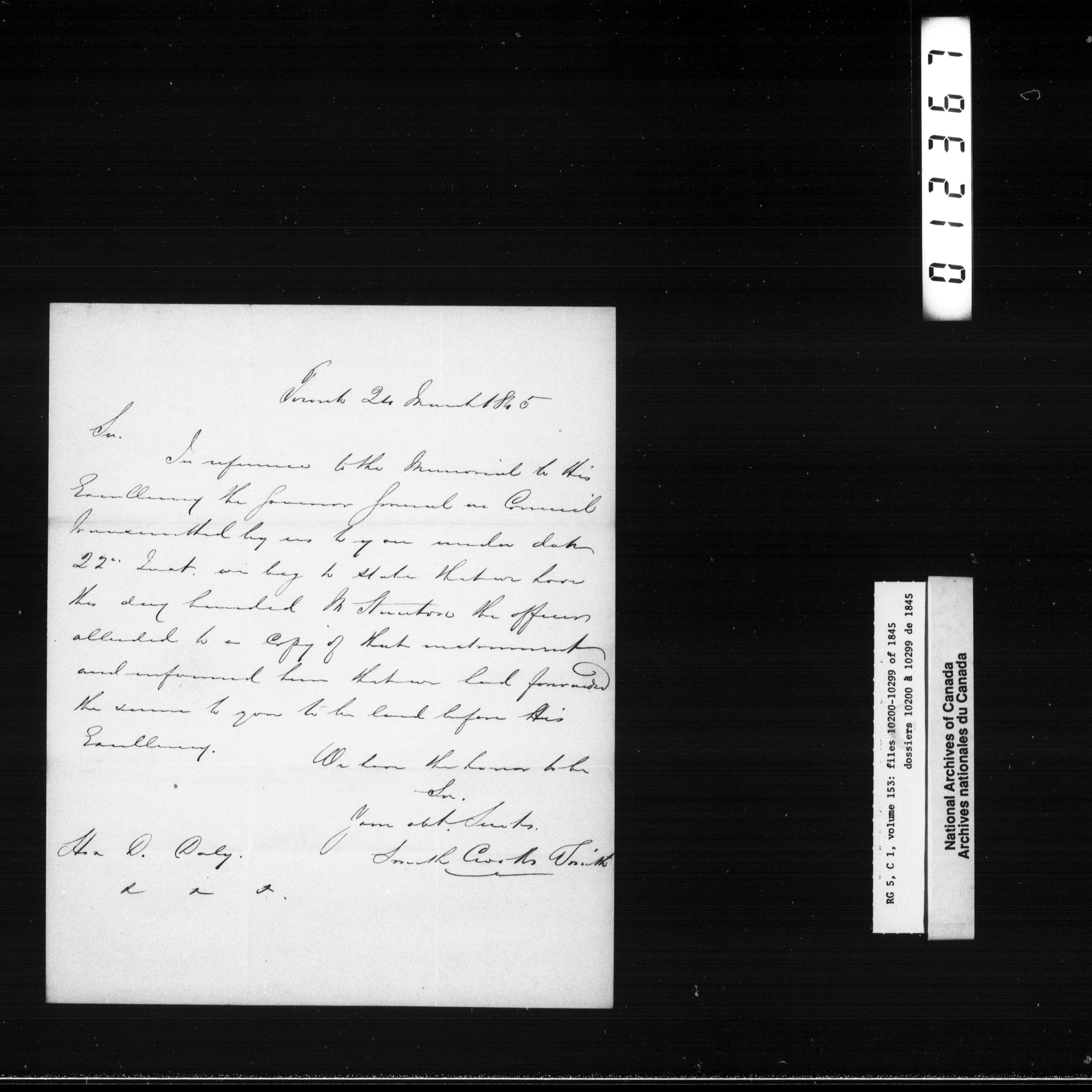 Canada West : Provincial Secretary, numbered correspondence files, 1844 to 1867 - 2357