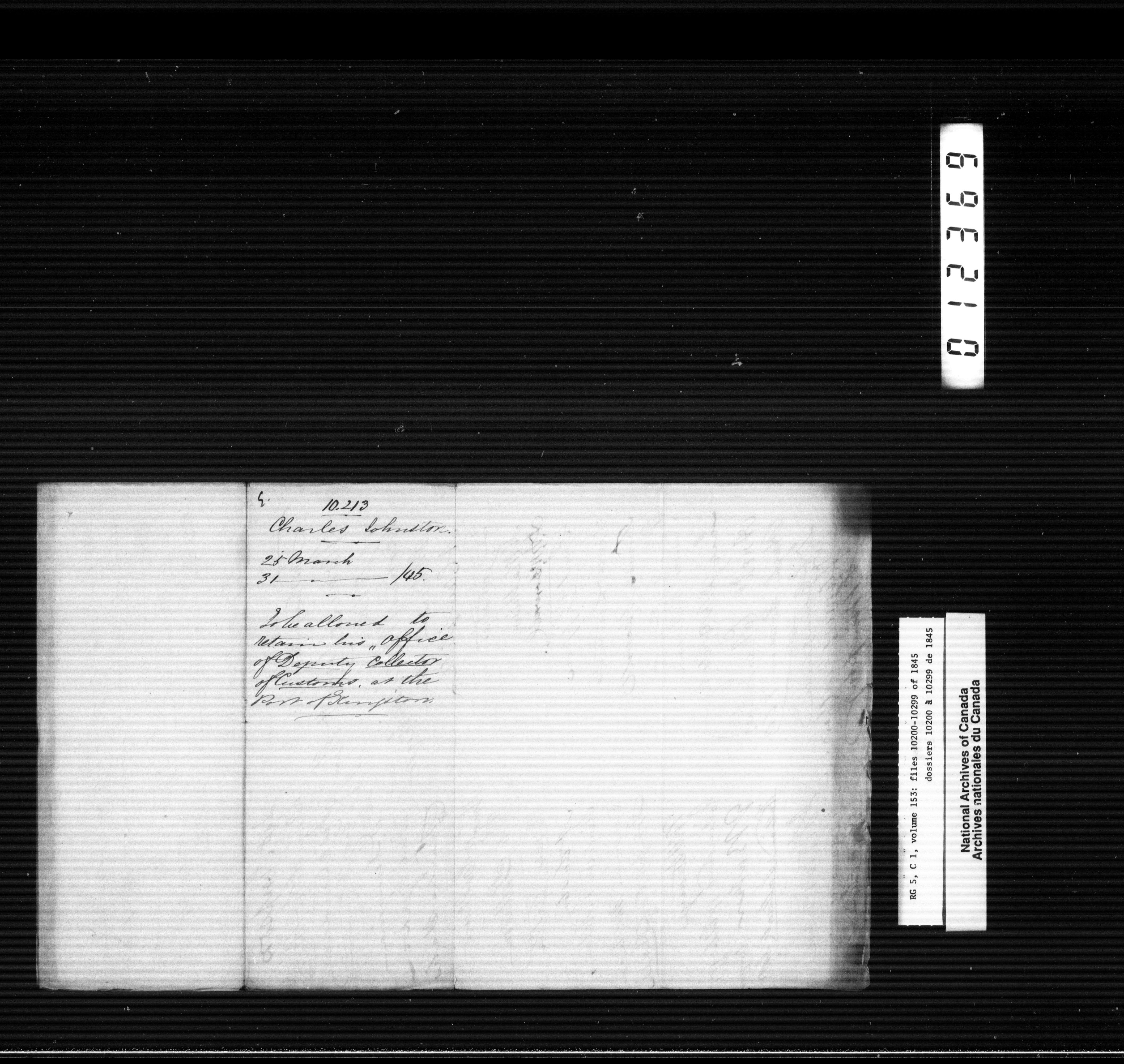 Canada West : Provincial Secretary, numbered correspondence files, 1844 to 1867 - 2357