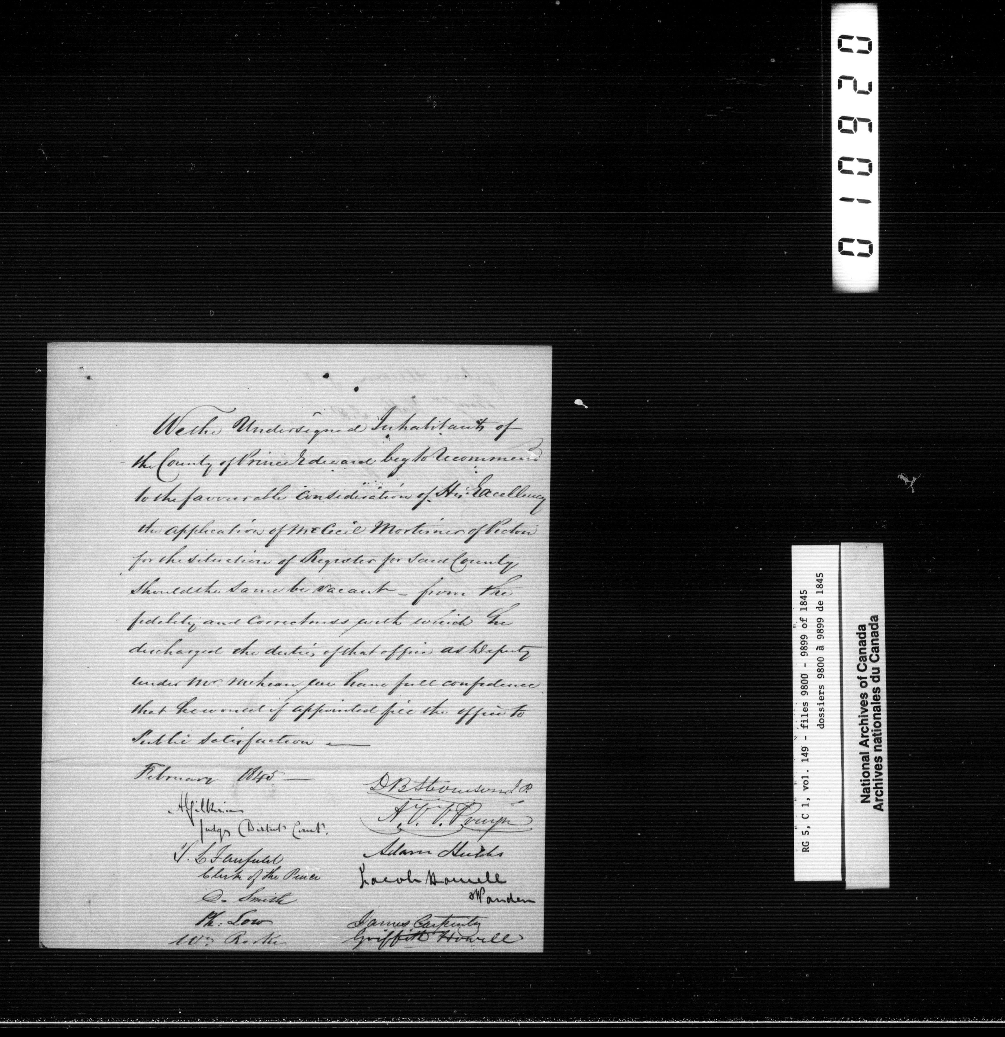 Canada West : Provincial Secretary, numbered correspondence files, 1844 to 1867 - 2357