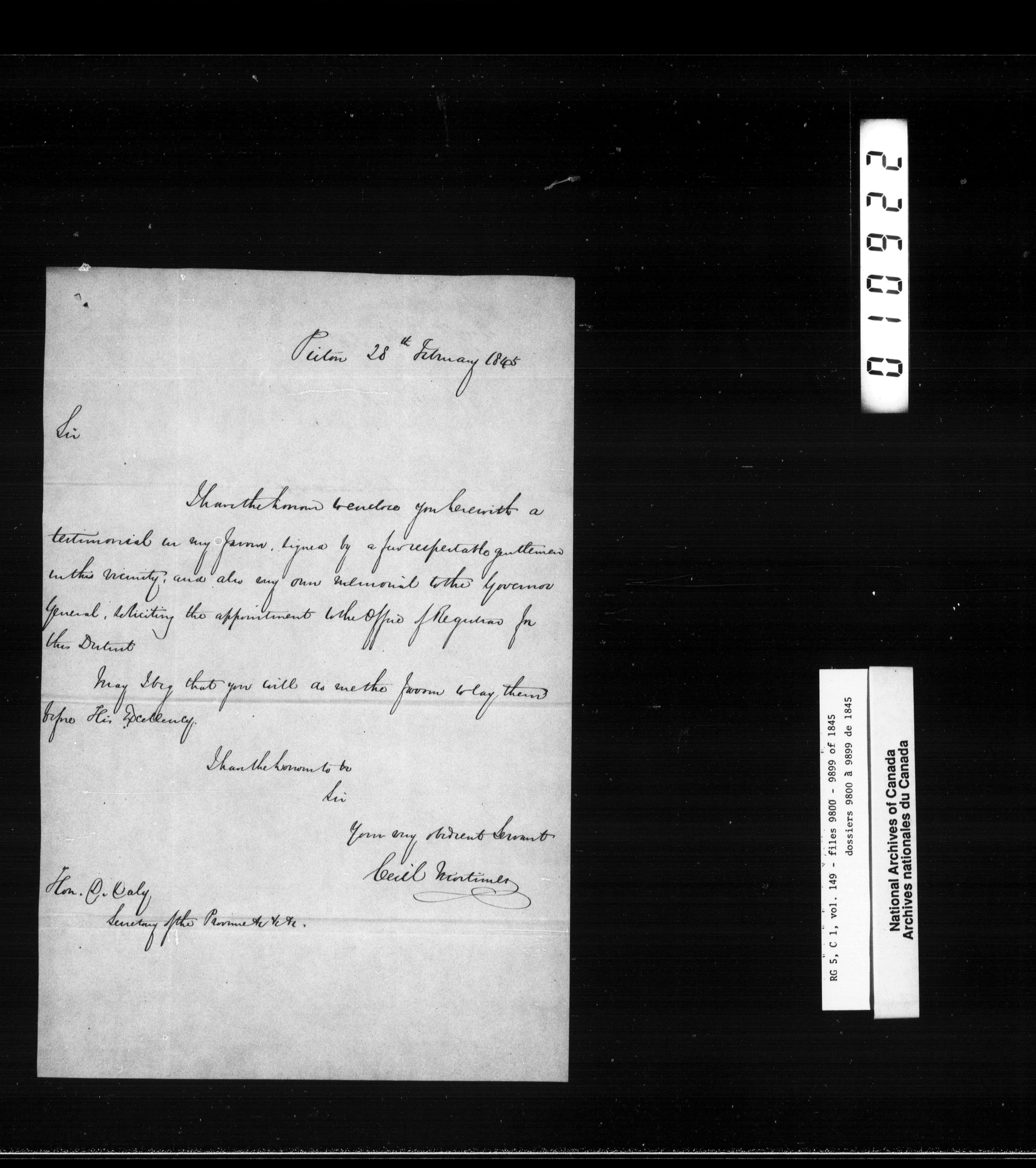 Canada West : Provincial Secretary, numbered correspondence files, 1844 to 1867 - 2357