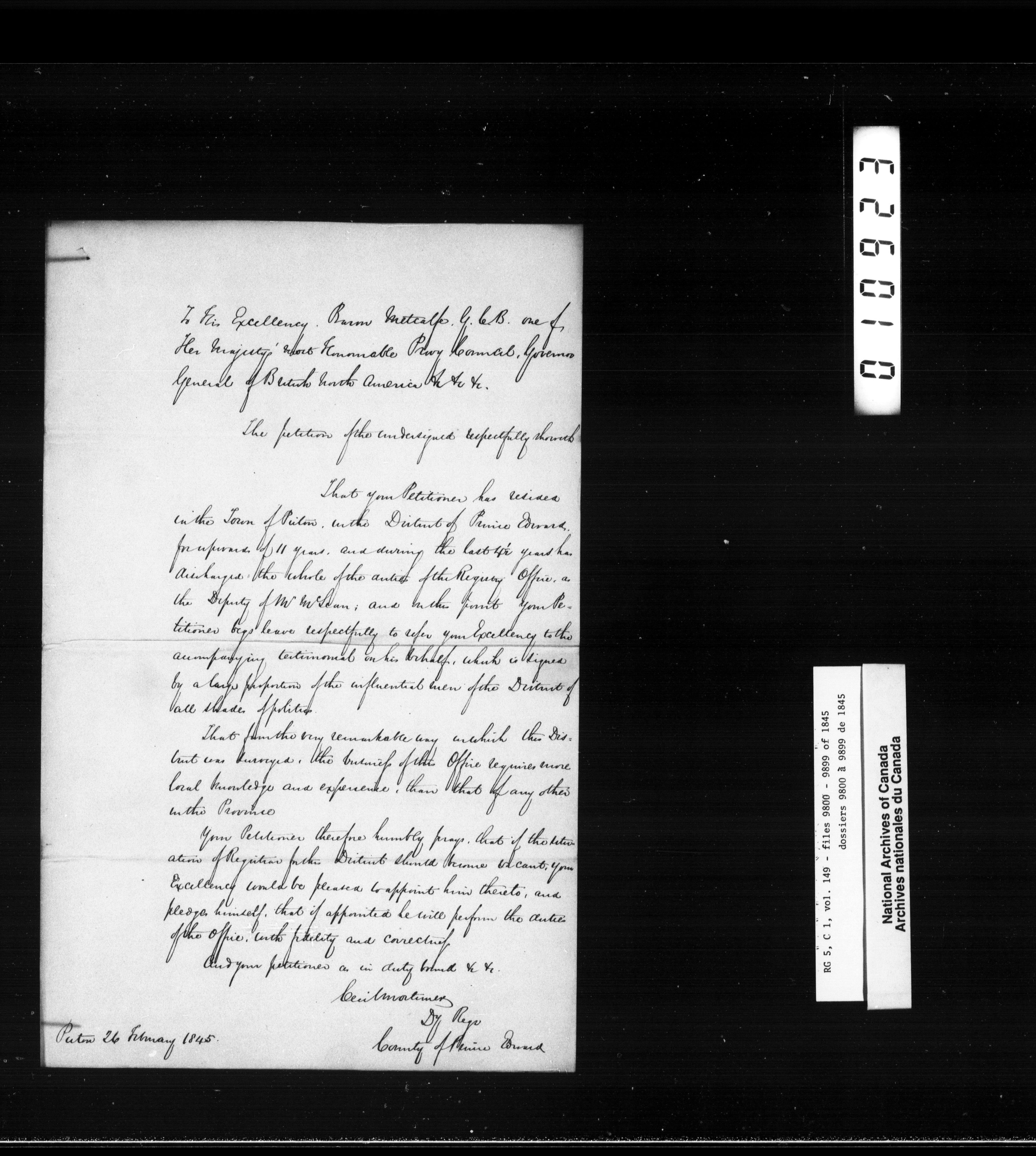 Canada West : Provincial Secretary, numbered correspondence files, 1844 to 1867 : H-2357