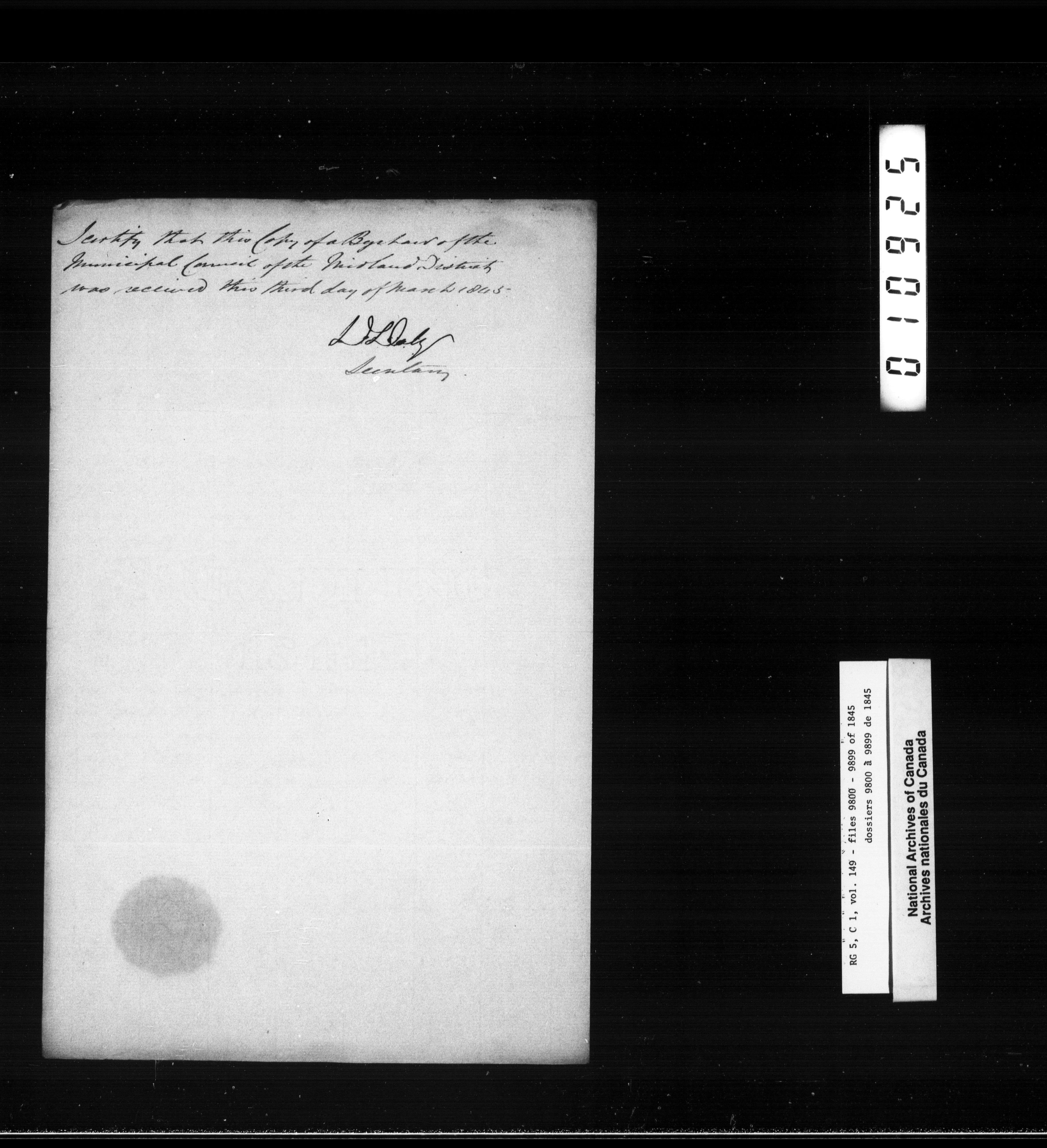 Canada West : Provincial Secretary, numbered correspondence files, 1844 to 1867 - 2357