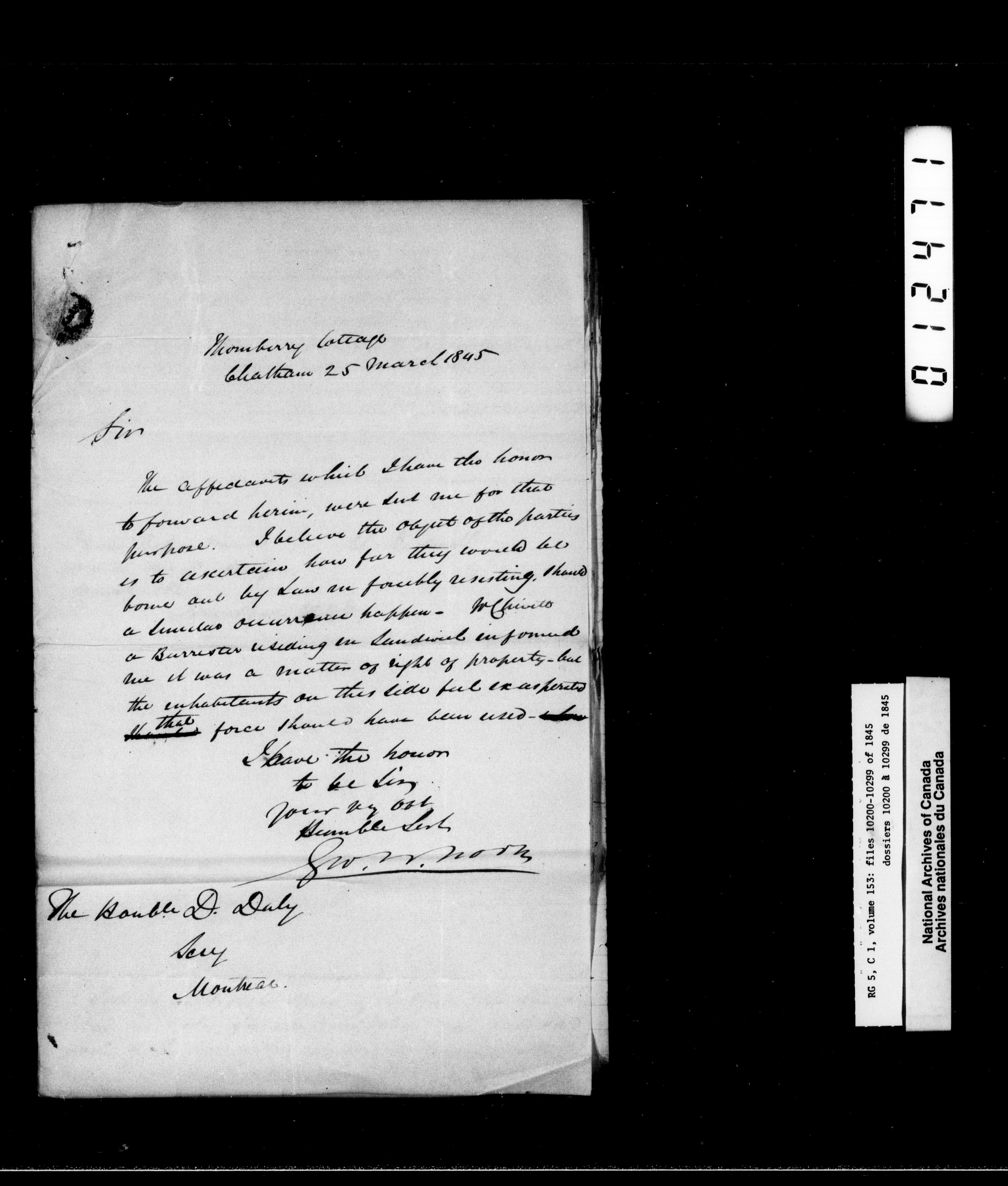 Canada West : Provincial Secretary, numbered correspondence files, 1844 to 1867 - 2358