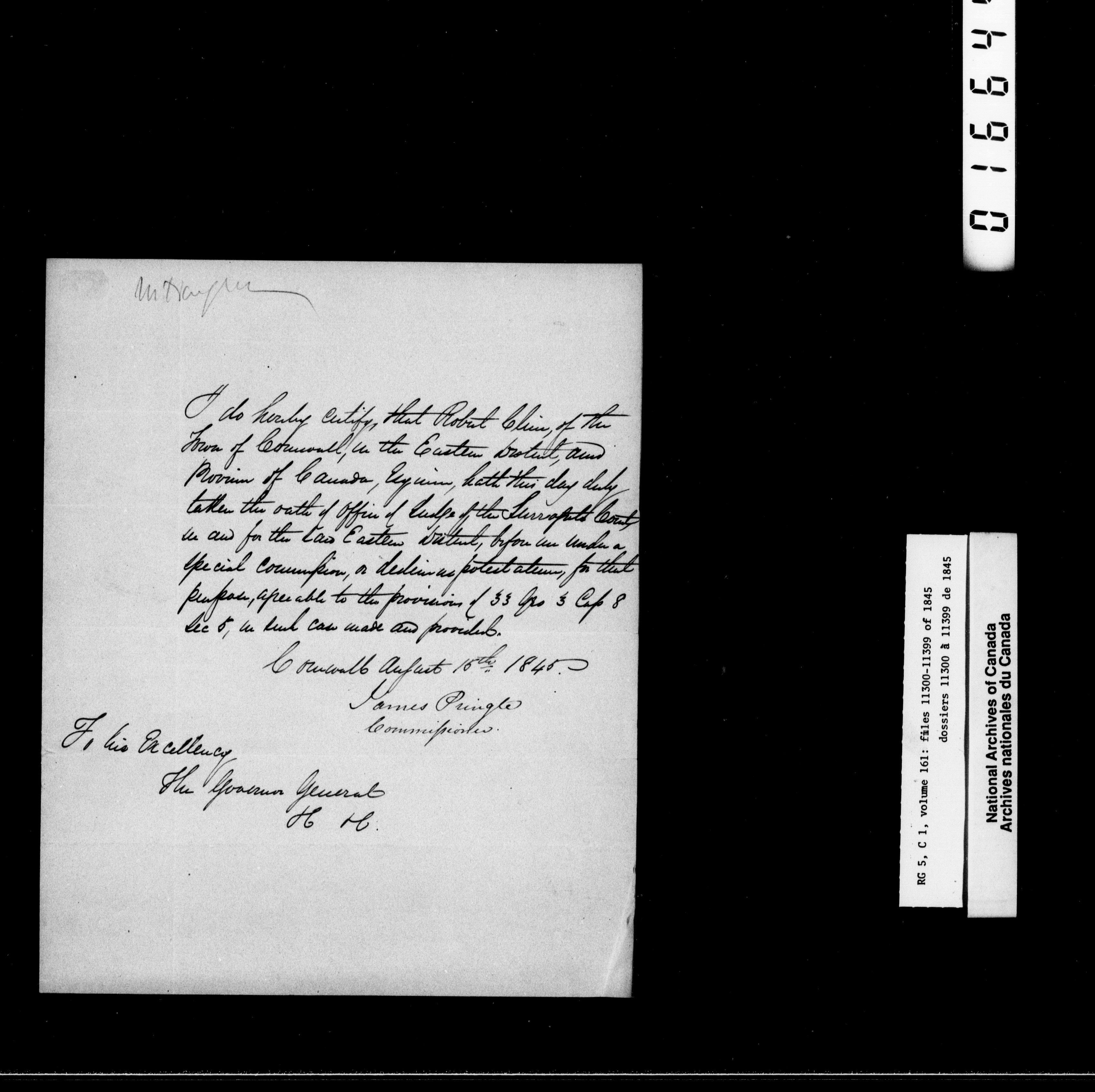 Canada West : Provincial Secretary, numbered correspondence files, 1844 to 1867 - 2360