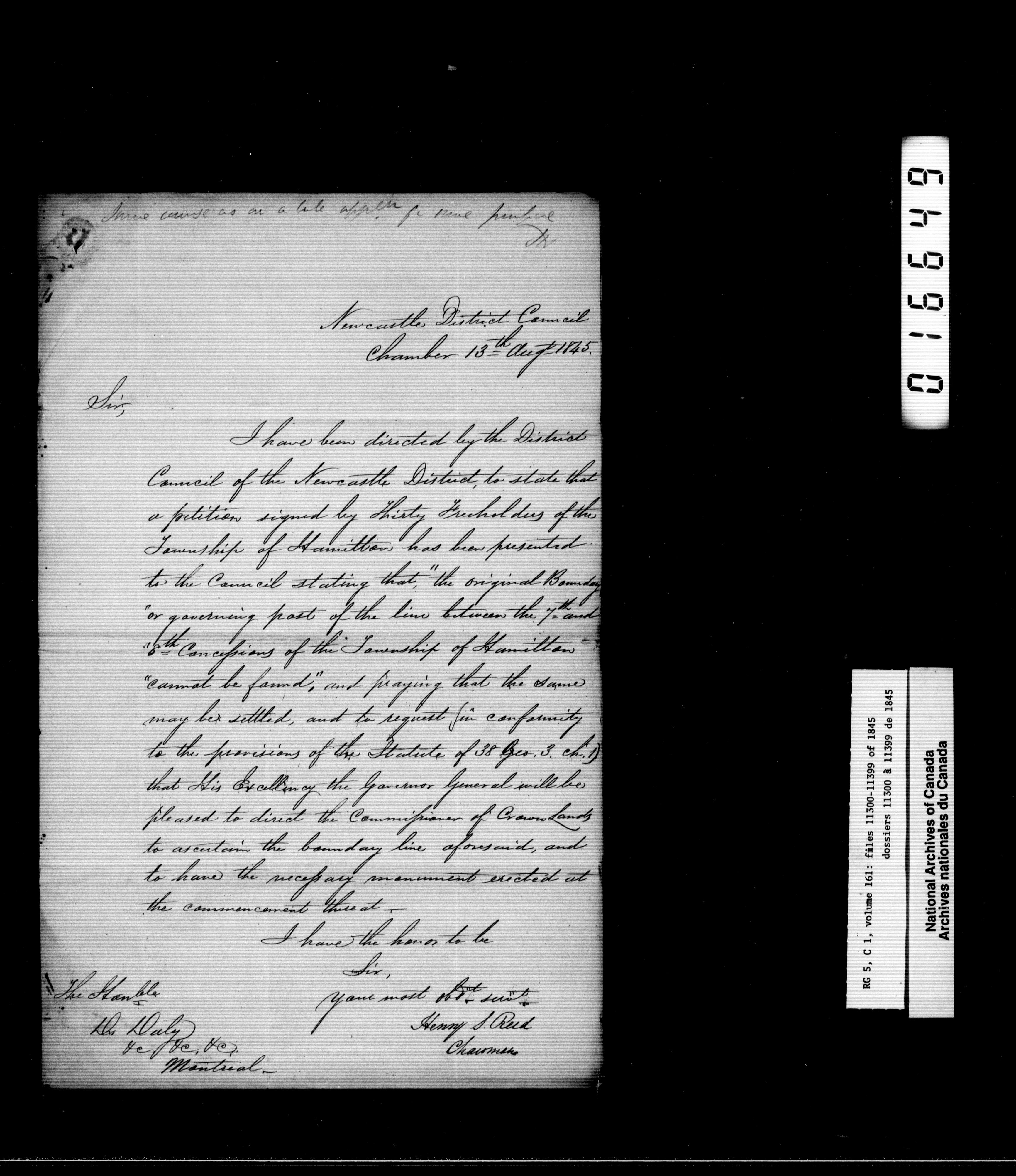 Canada West : Provincial Secretary, numbered correspondence files, 1844 to 1867 - 2360