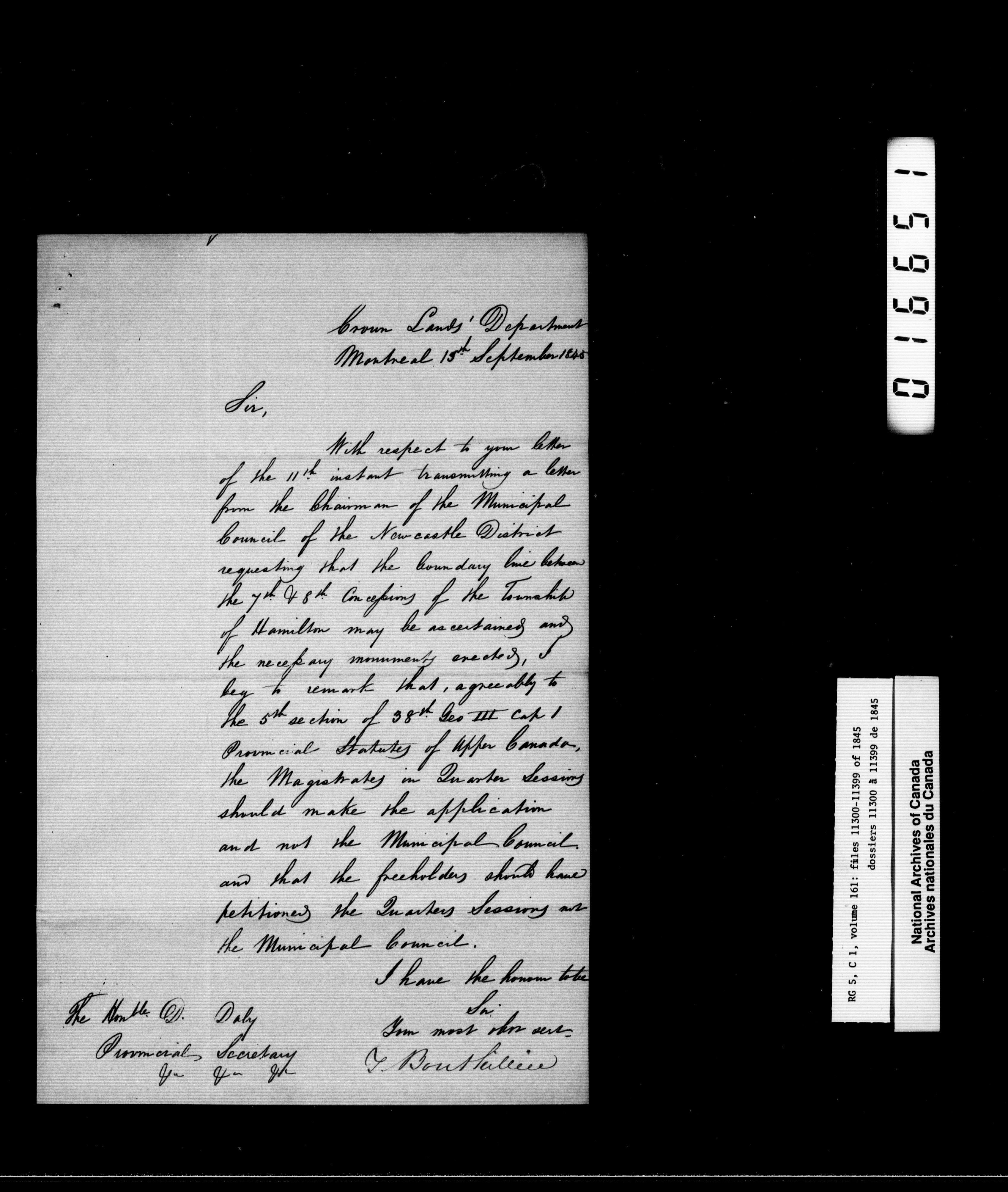 Canada West : Provincial Secretary, numbered correspondence files, 1844 to 1867 : H-2360