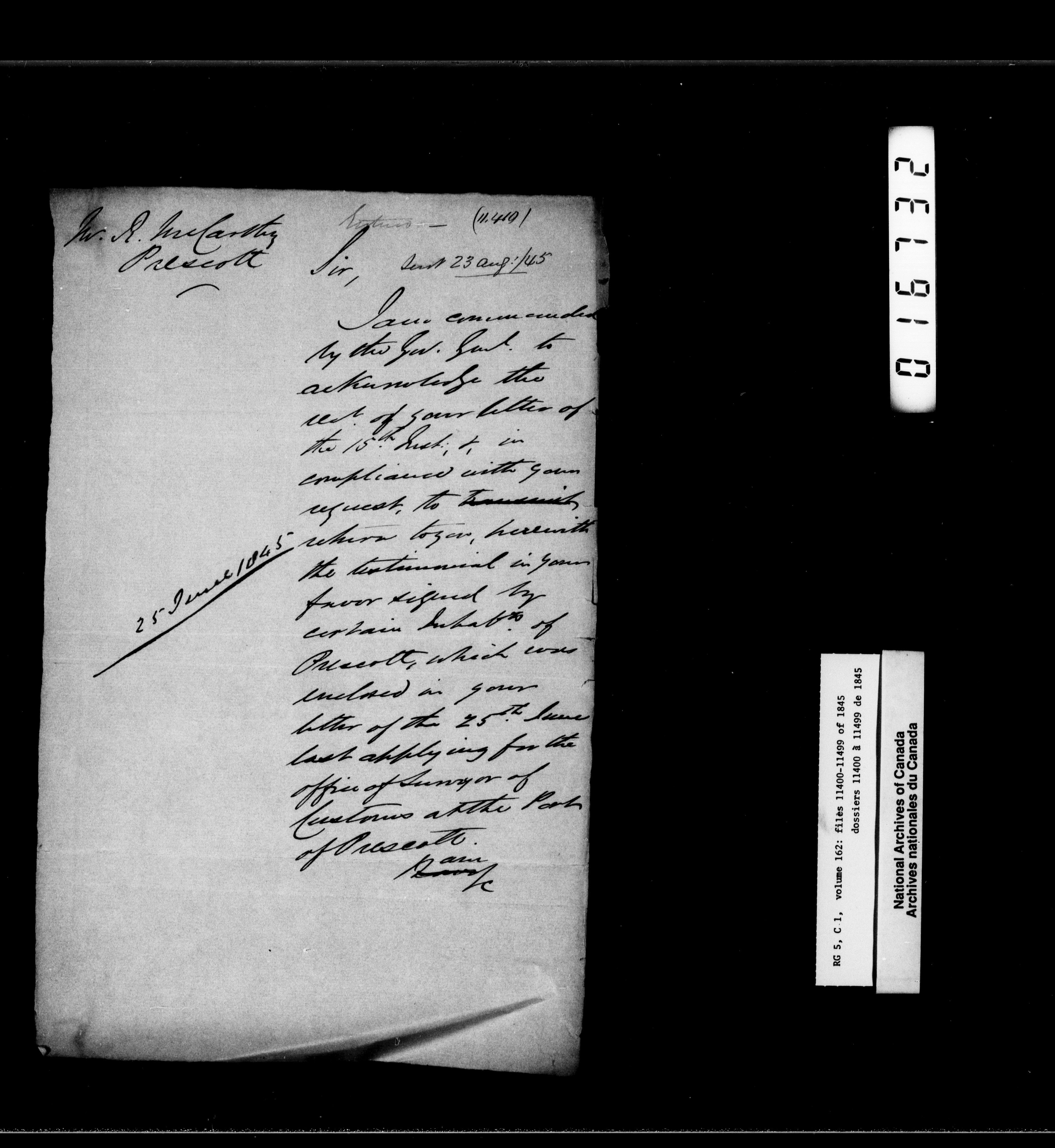 Canada West : Provincial Secretary, numbered correspondence files, 1844 to 1867 : H-2361