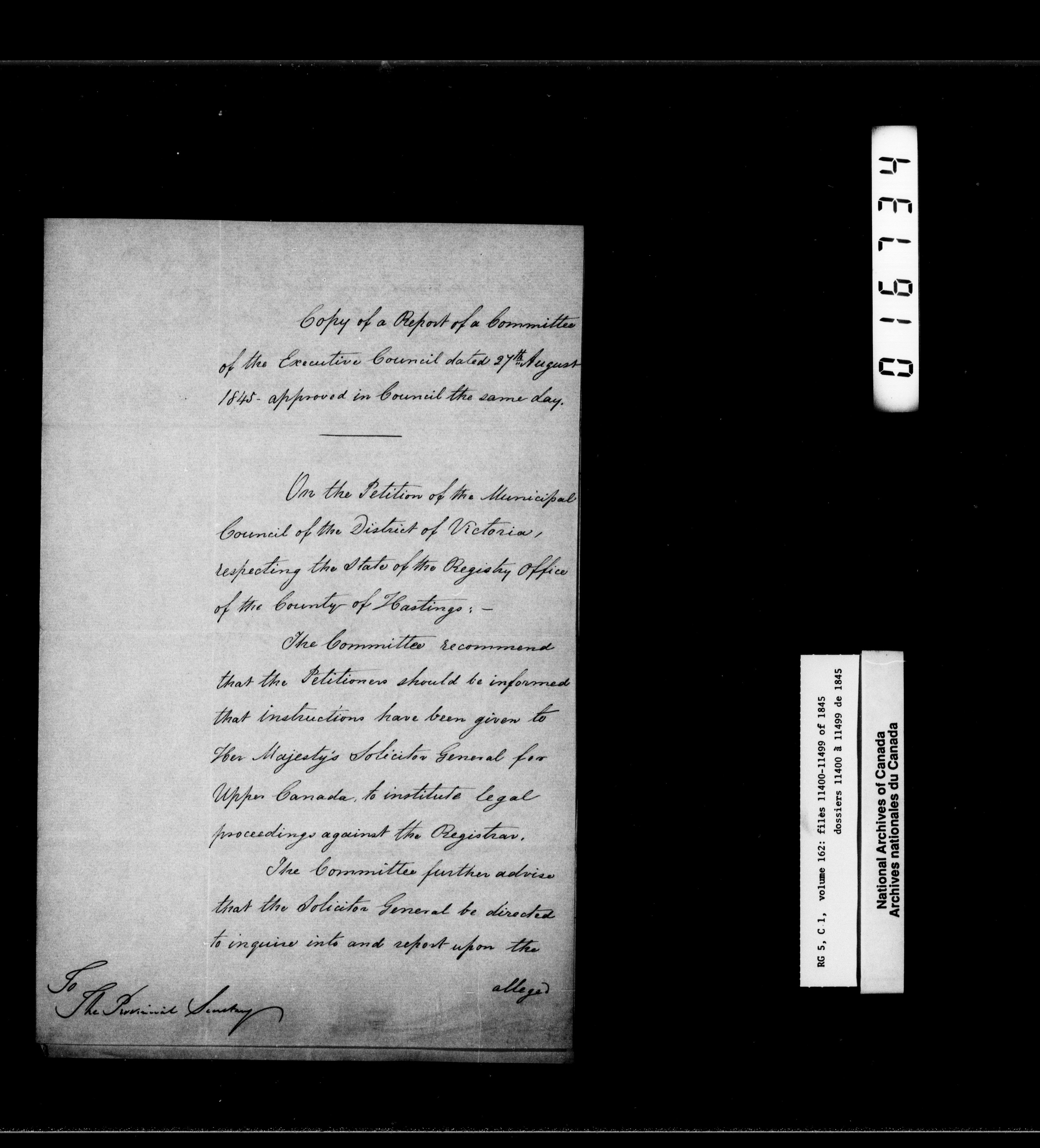 Canada West : Provincial Secretary, numbered correspondence files, 1844 to 1867 : H-2361