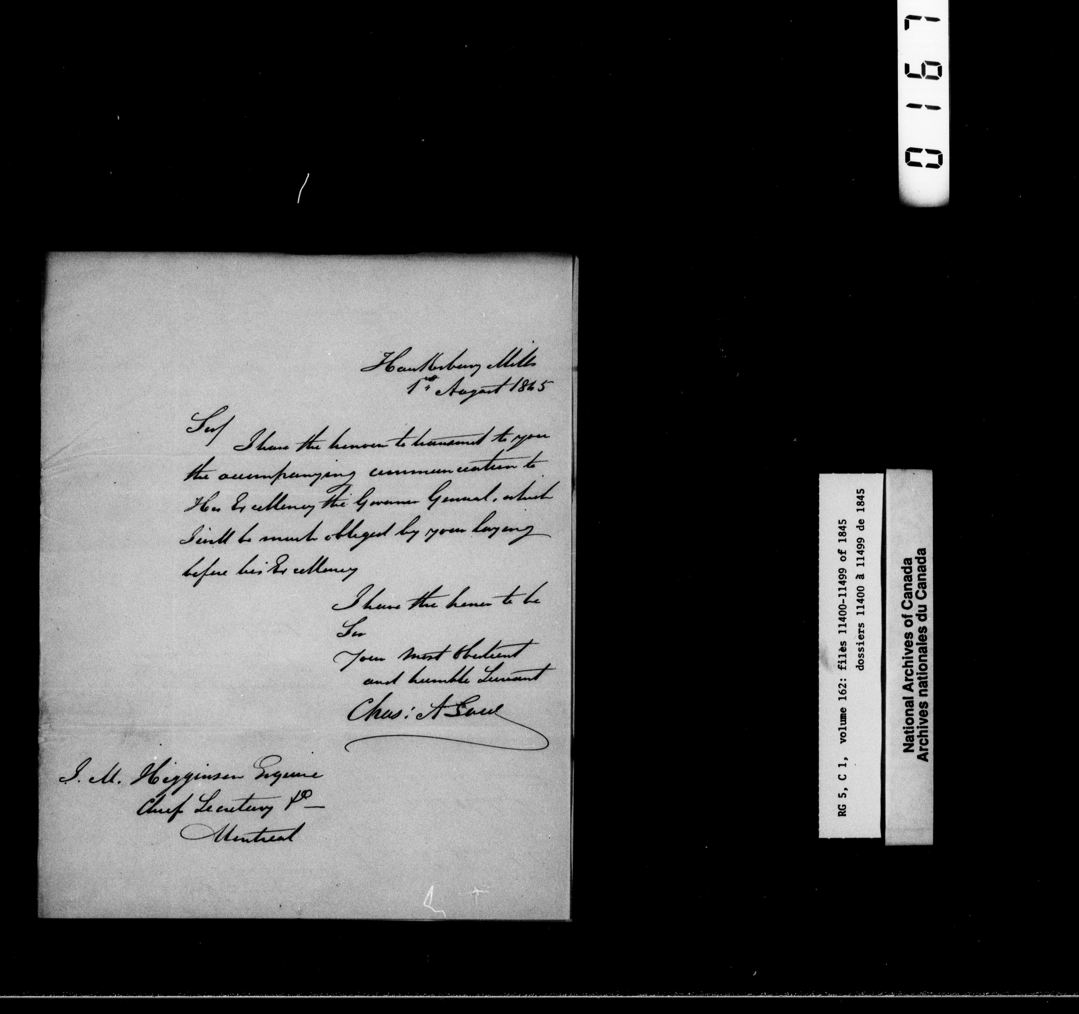 Canada West : Provincial Secretary, numbered correspondence files, 1844 to 1867 - 2361
