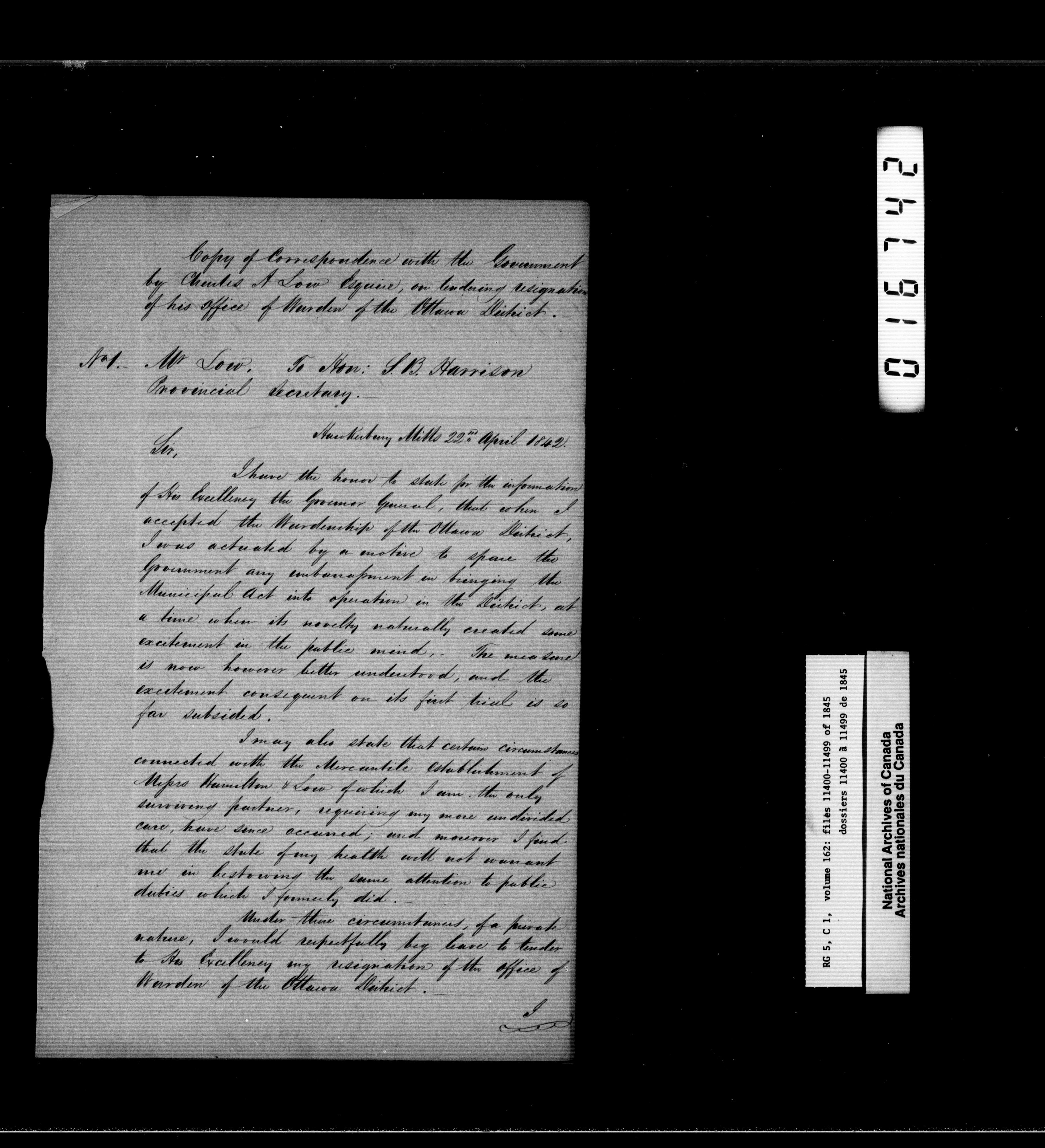 Canada West : Provincial Secretary, numbered correspondence files, 1844 to 1867 - 2361