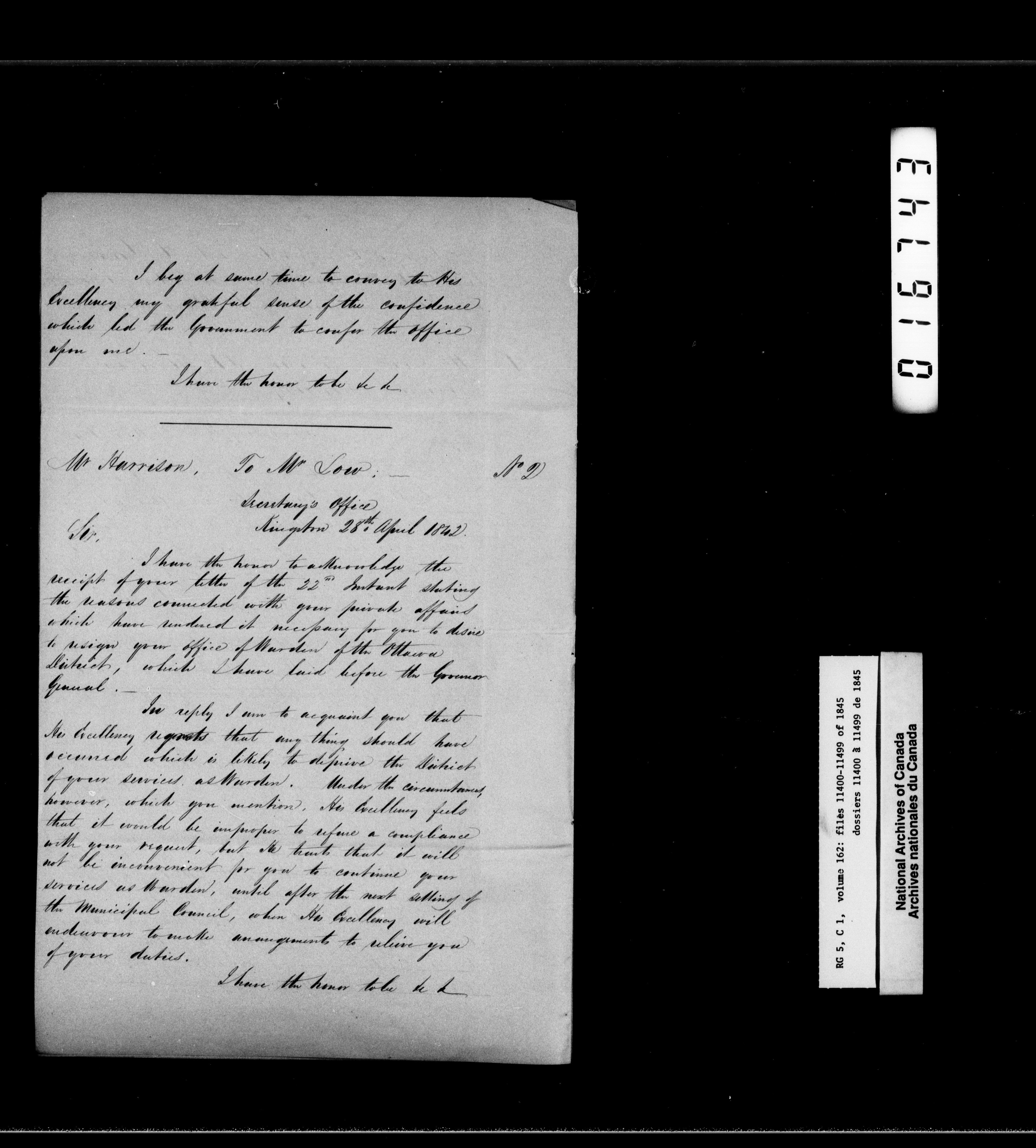Canada West : Provincial Secretary, numbered correspondence files, 1844 to 1867 - 2361