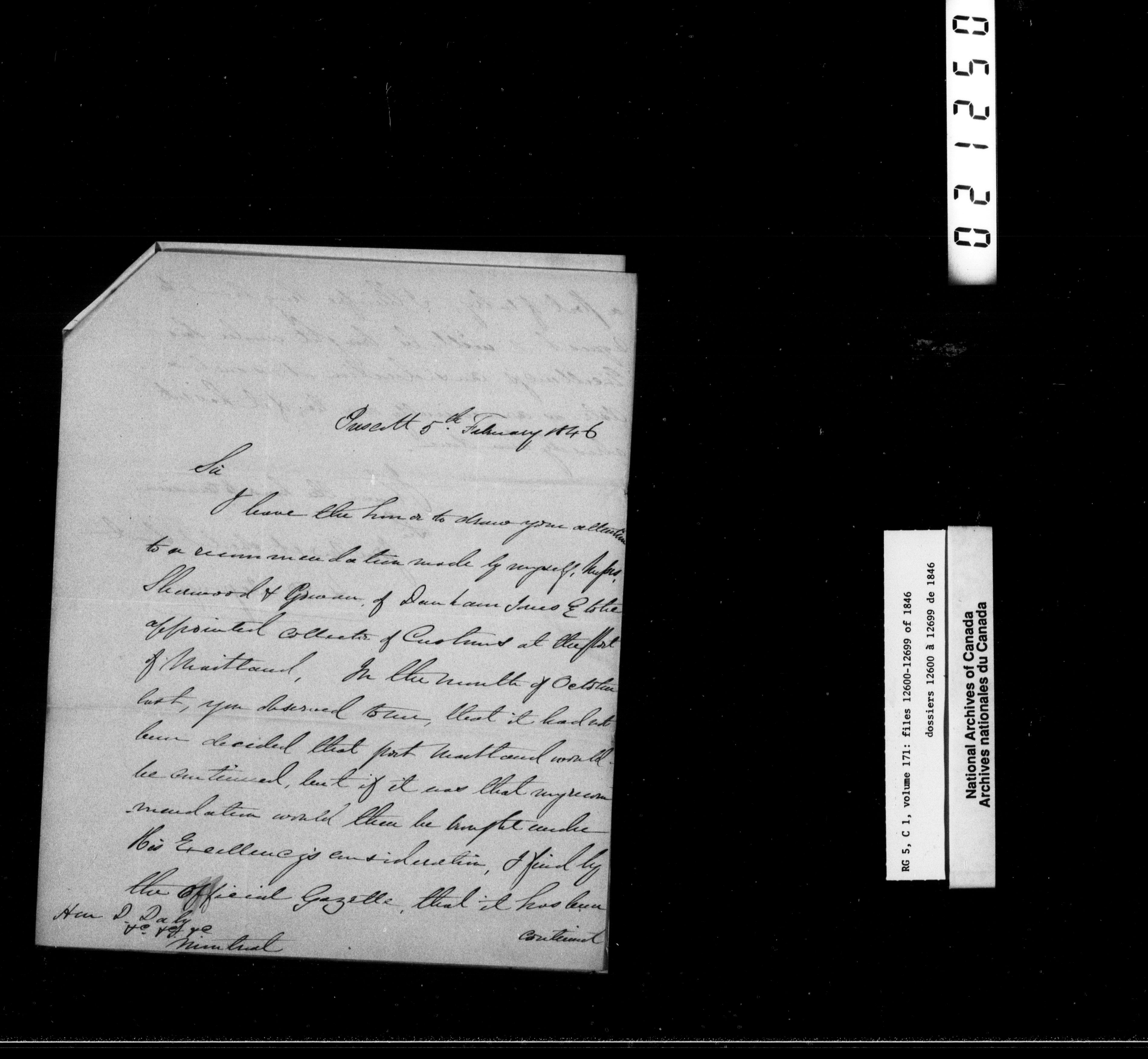 Canada West : Provincial Secretary, numbered correspondence files, 1844 to 1867 : H-2363