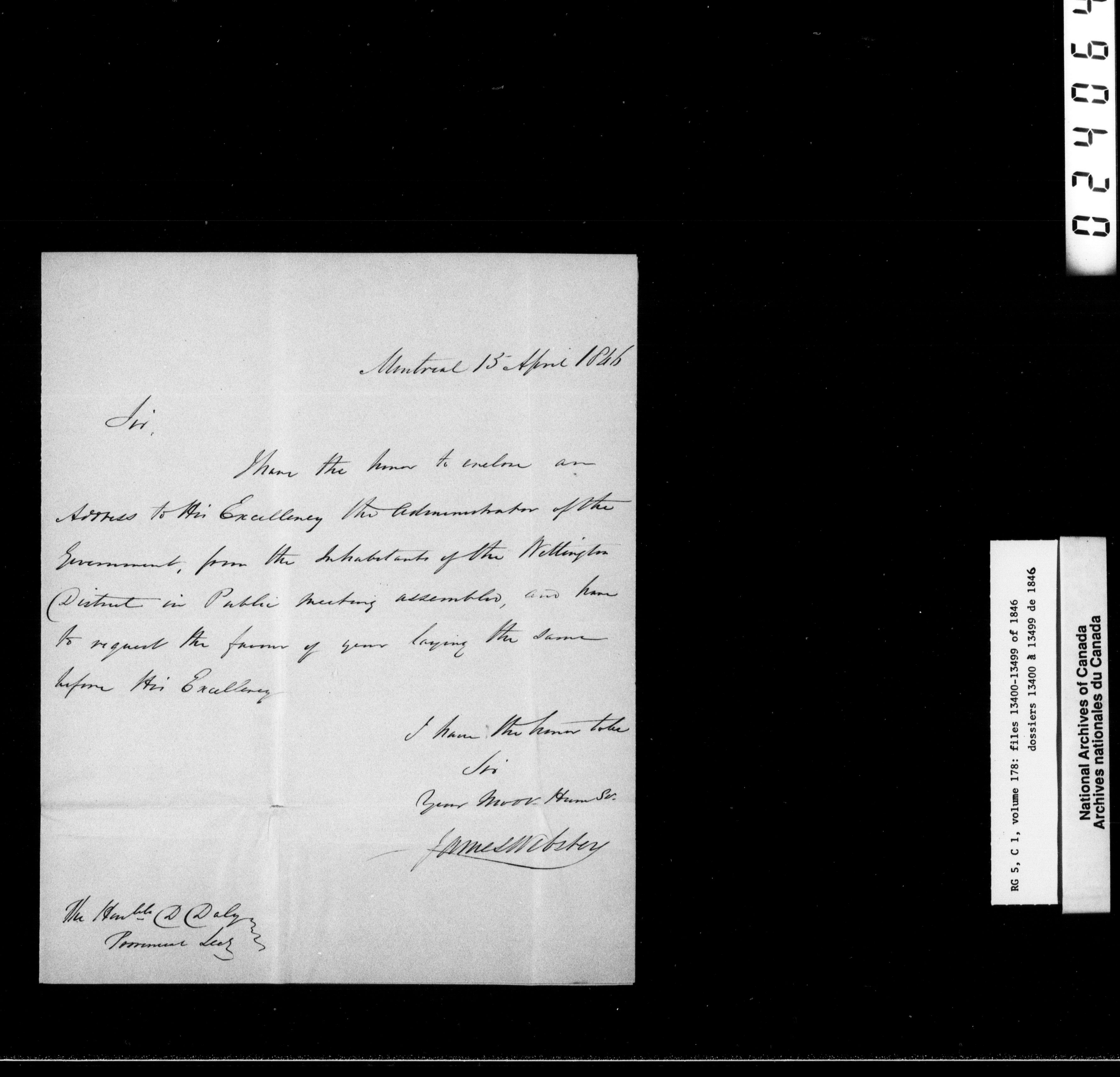 Canada West : Provincial Secretary, numbered correspondence files, 1844 to 1867 - 2365