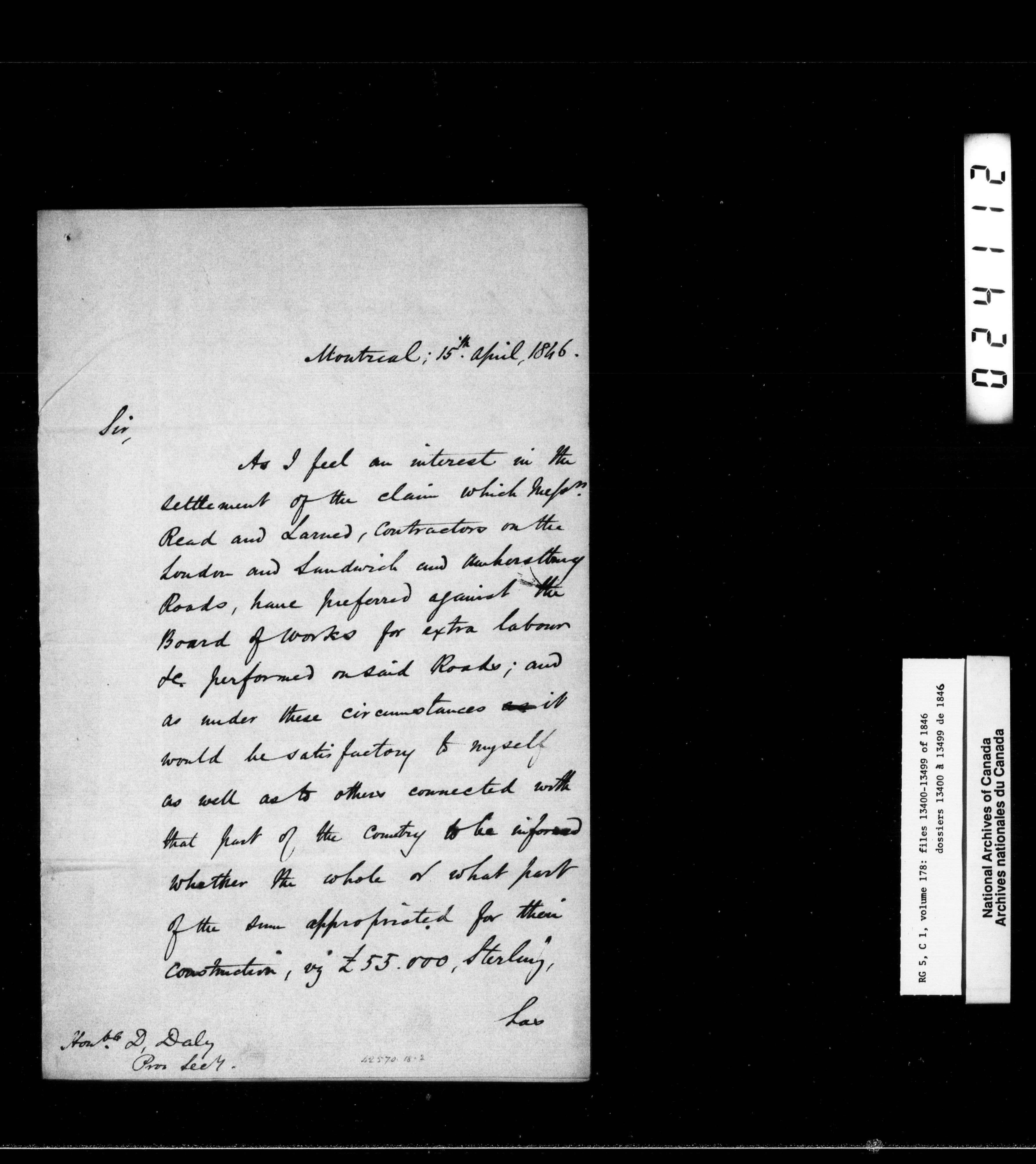 Canada West : Provincial Secretary, numbered correspondence files, 1844 to 1867 : H-2365